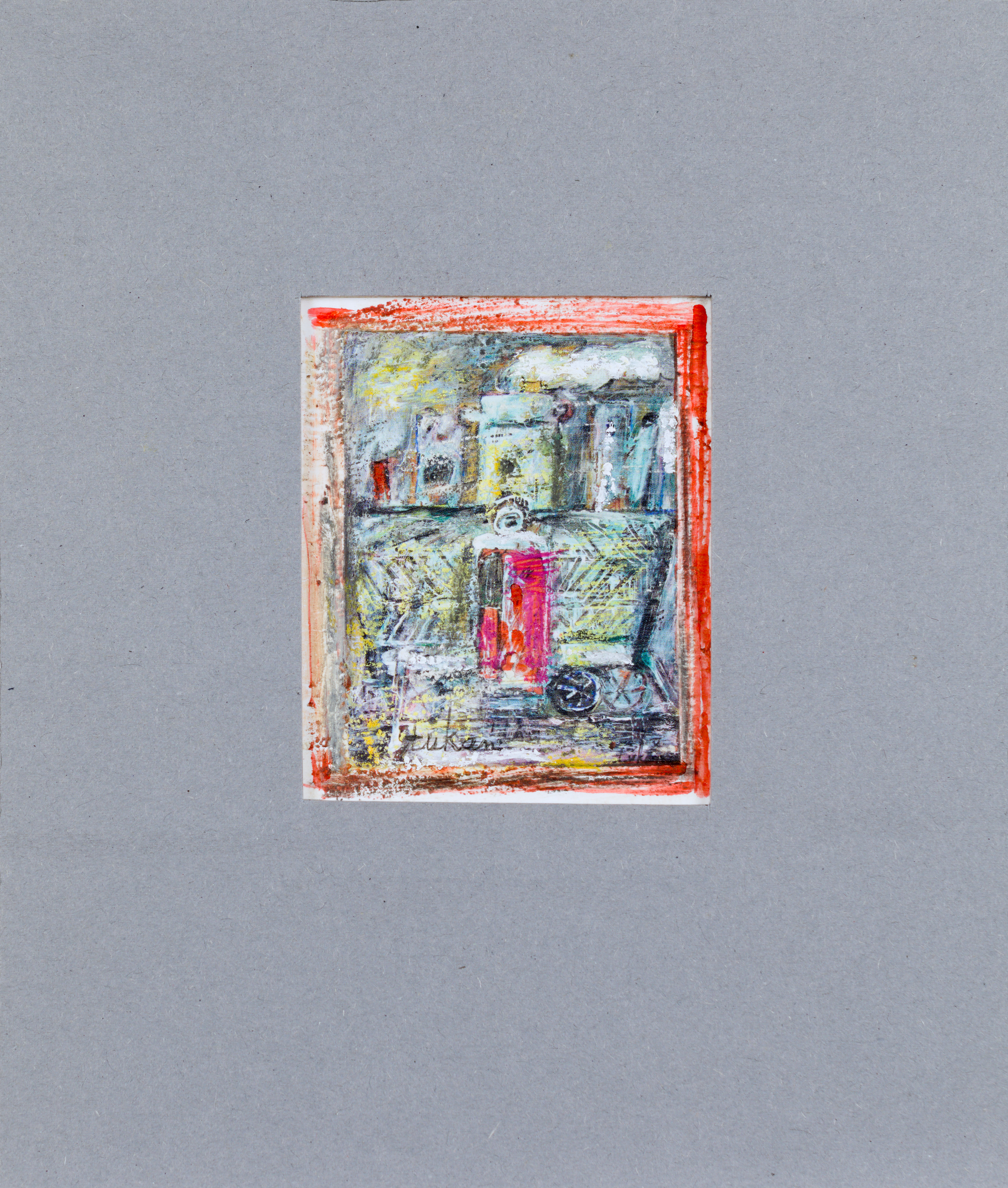 technika mieszana: akryl, akwarela, olejna kredka, papier; 8,2 x 6,7 cm (w św. passe-partout);sygn. l. d.: tukan