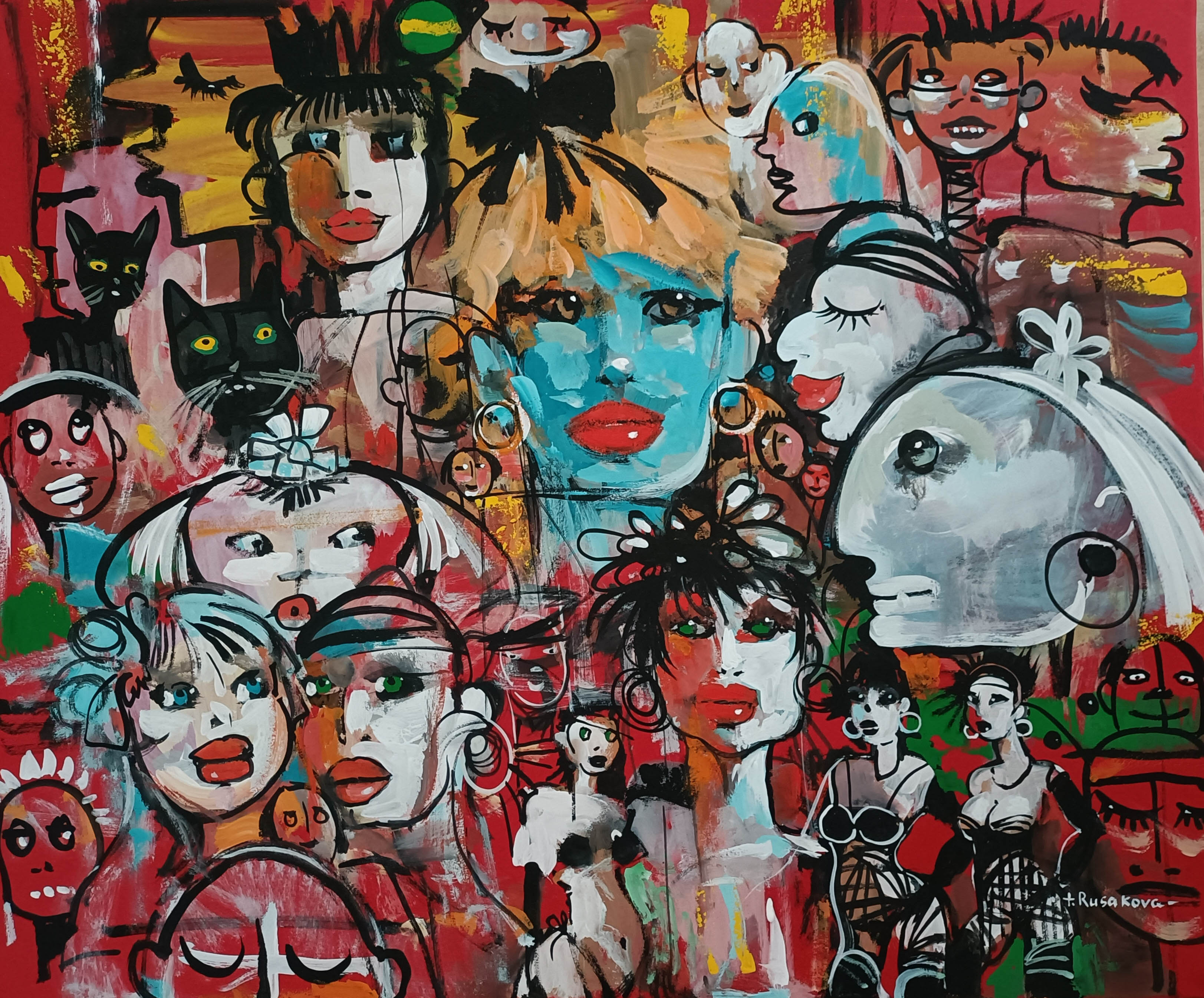 technika mieszana (akryl, tempera), papier, 49 x 59 cm,