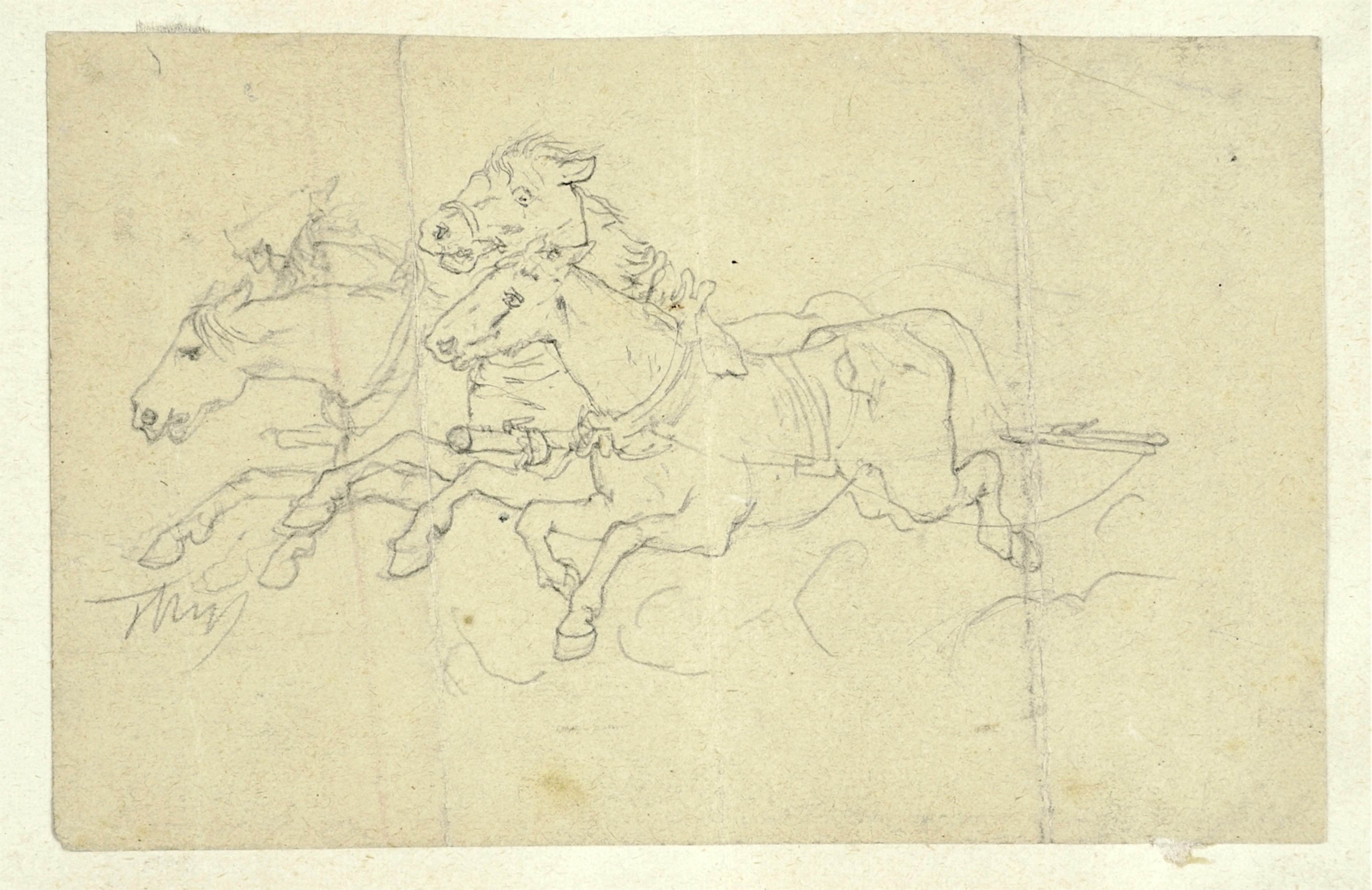 ołówek, papier naklejony na kartę szkicownika; 9,5 x 15 cm (wymiar arkusza z rysunkiem), 13,9 x 20,5 cm (wymiar karty szkicownika);