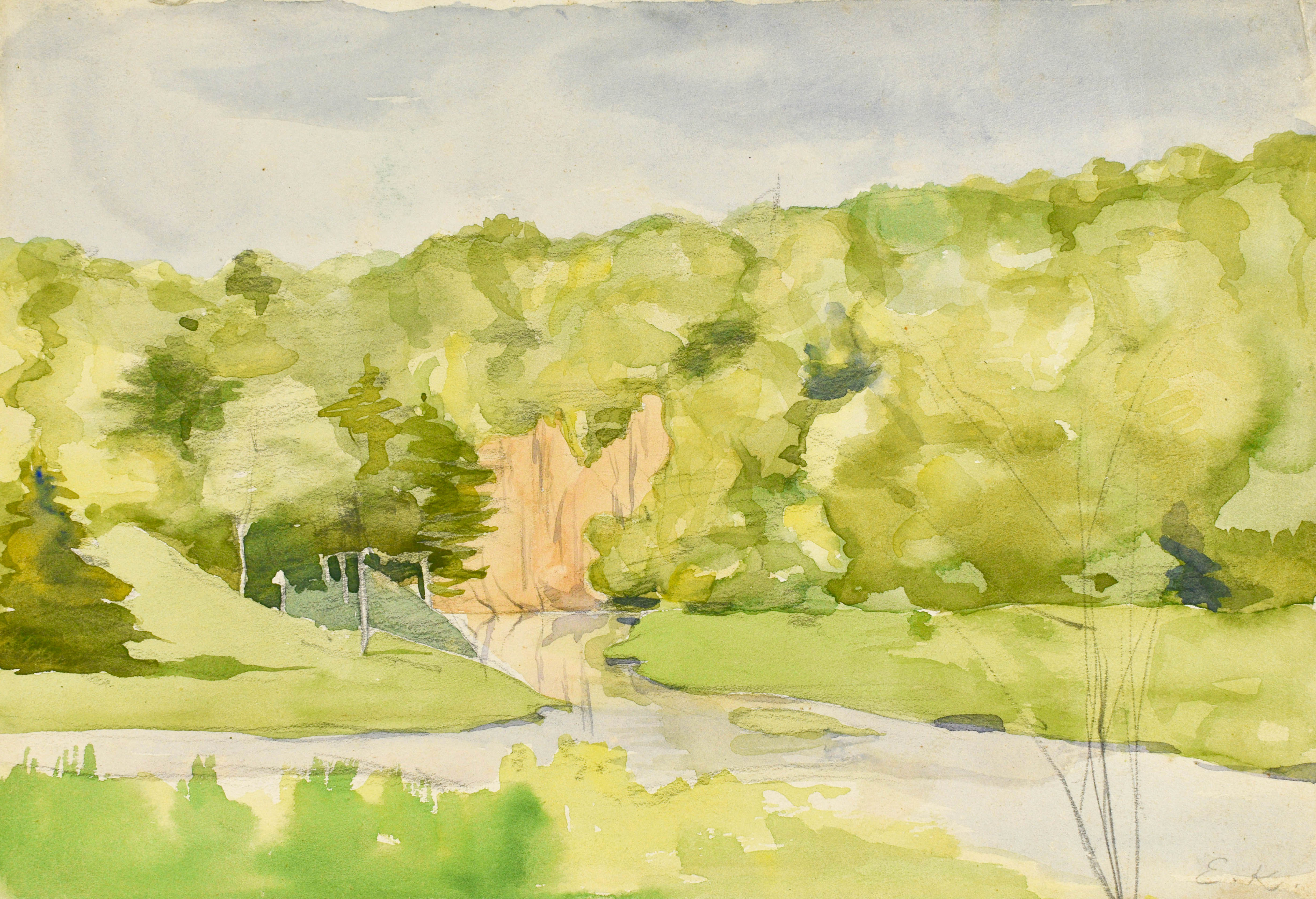 akwarela na podrysowaniu ołówkiem, papier; 18,5 x 26,8 cm;