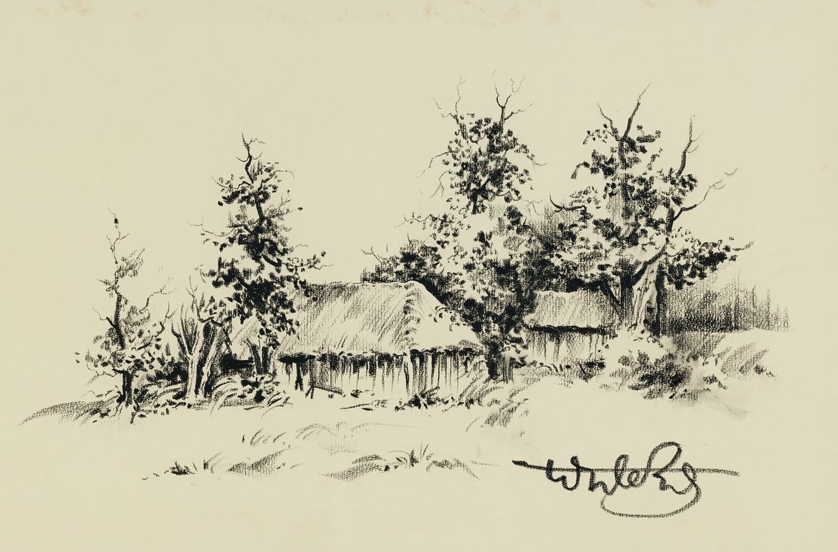 Czarna kredka, papier; 38 x 55 cm (w świetle p-p)
