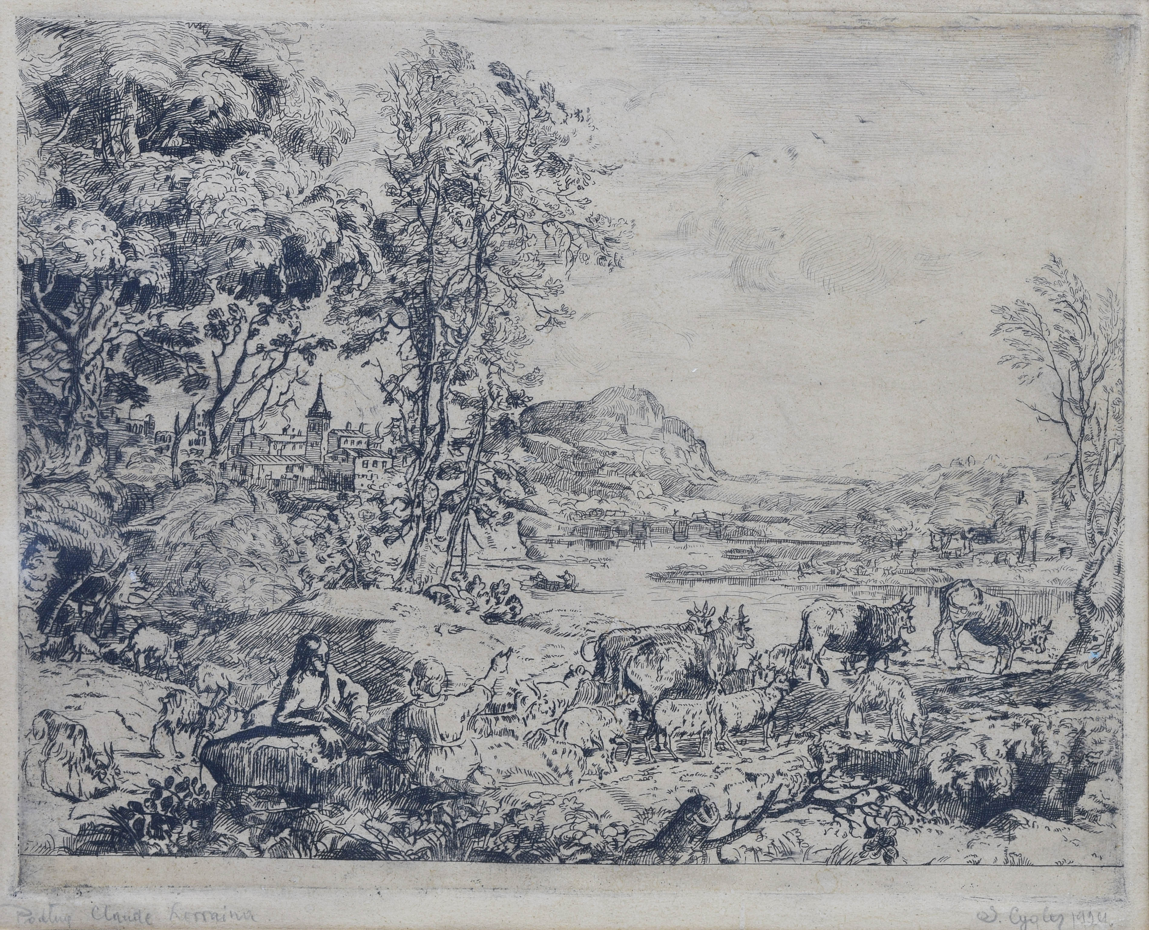 akwaforta, papier; 19,5 x 24,5 cm (odcisk płyty), 20,8 x 25,2 cm (wymiar arkusza w świetle oprawy); sygn. i dat. p. d.: S. Cygler 1924. (ołówkiem); napis l. d.: Podług Claude Lorraina (ołówkiem).