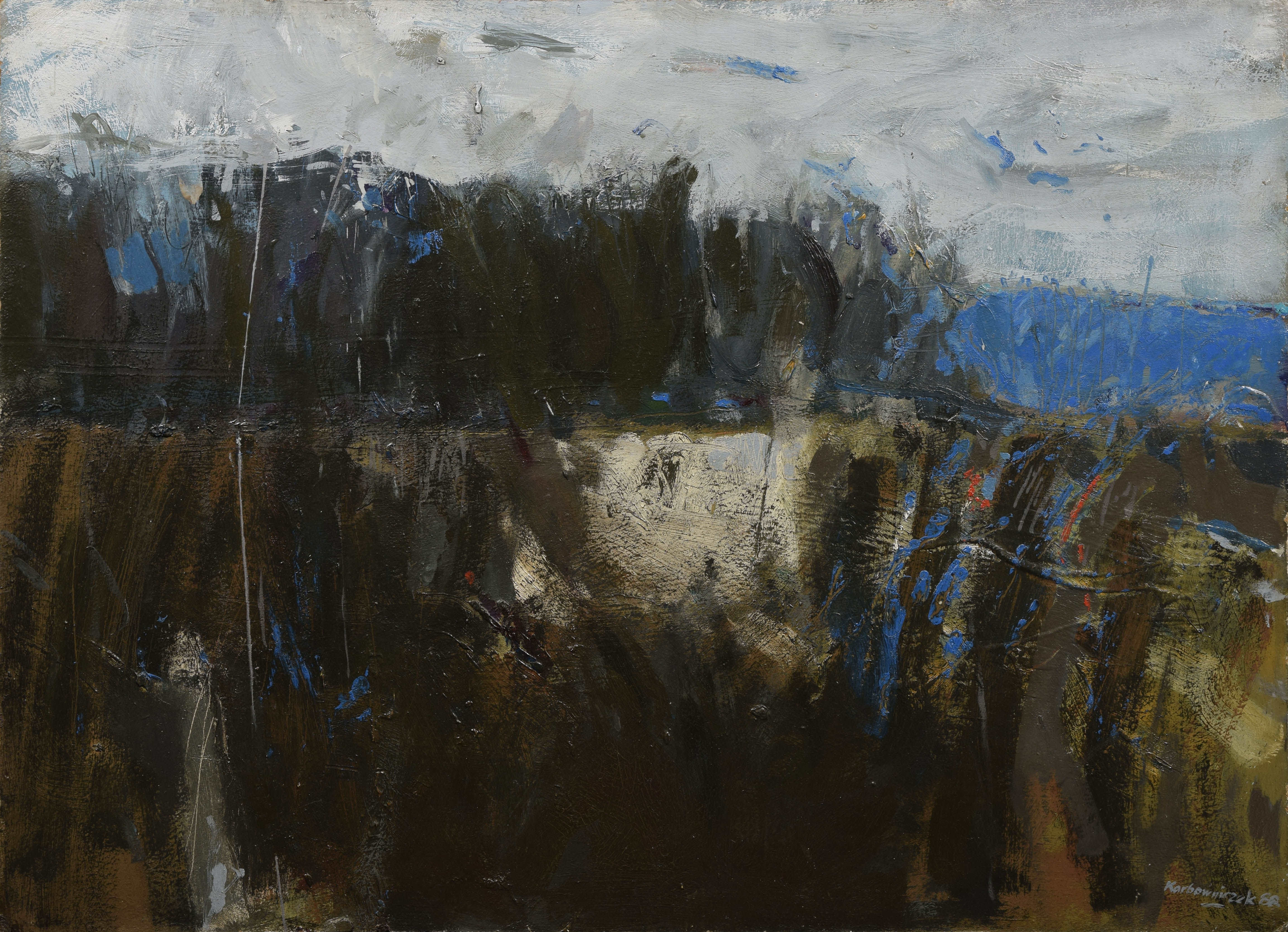 olej, płyta; 56 x 76 cm; sygn. i dat. p. d.: Karbowniczek 88; na odwrocie napis: KARBOWNICZEK / plener (ołówkiem) oraz nalepka z Galerii Sztuki - Spółdzielnia Pracy Twórczej Polskich Artystów Plastyków PLASTYKA w Krakowie.