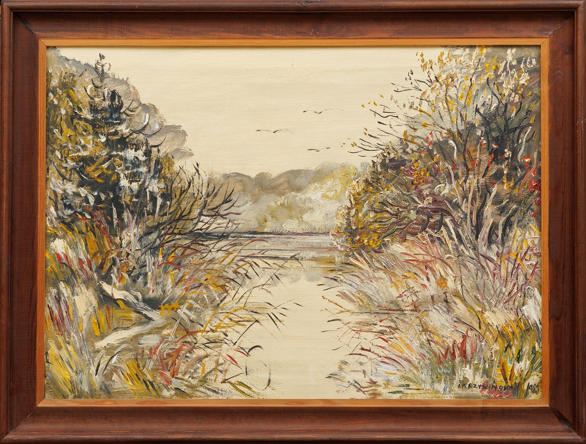 Olej, płótno; 56 x 78,5 cmSygnowany p.d.: I. Krzywińska 1988Na odwrocie nalepka SPHW, Galeria Sztuki Współczesnej z opisem pracy