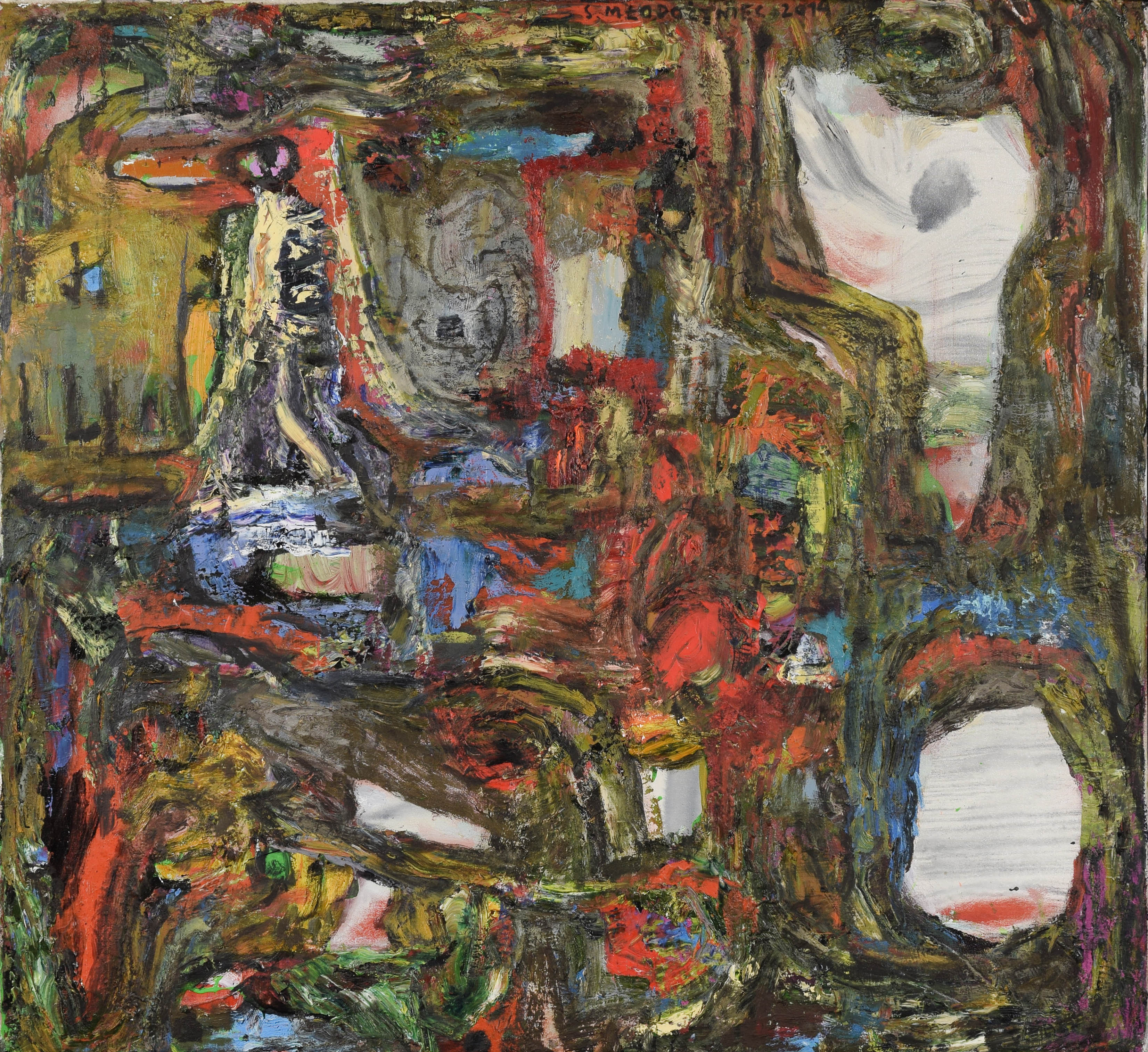 olej, płótno; 78 x 83 cm;sygn. i dat. śr. g.: S.MŁODOŻENIEC 2014;na odwrocie opis autorski: S.MŁODOŻENIEC / "PEYZAGE" (sic!) 2014 / olej / płótno / 78 x 83 cm.