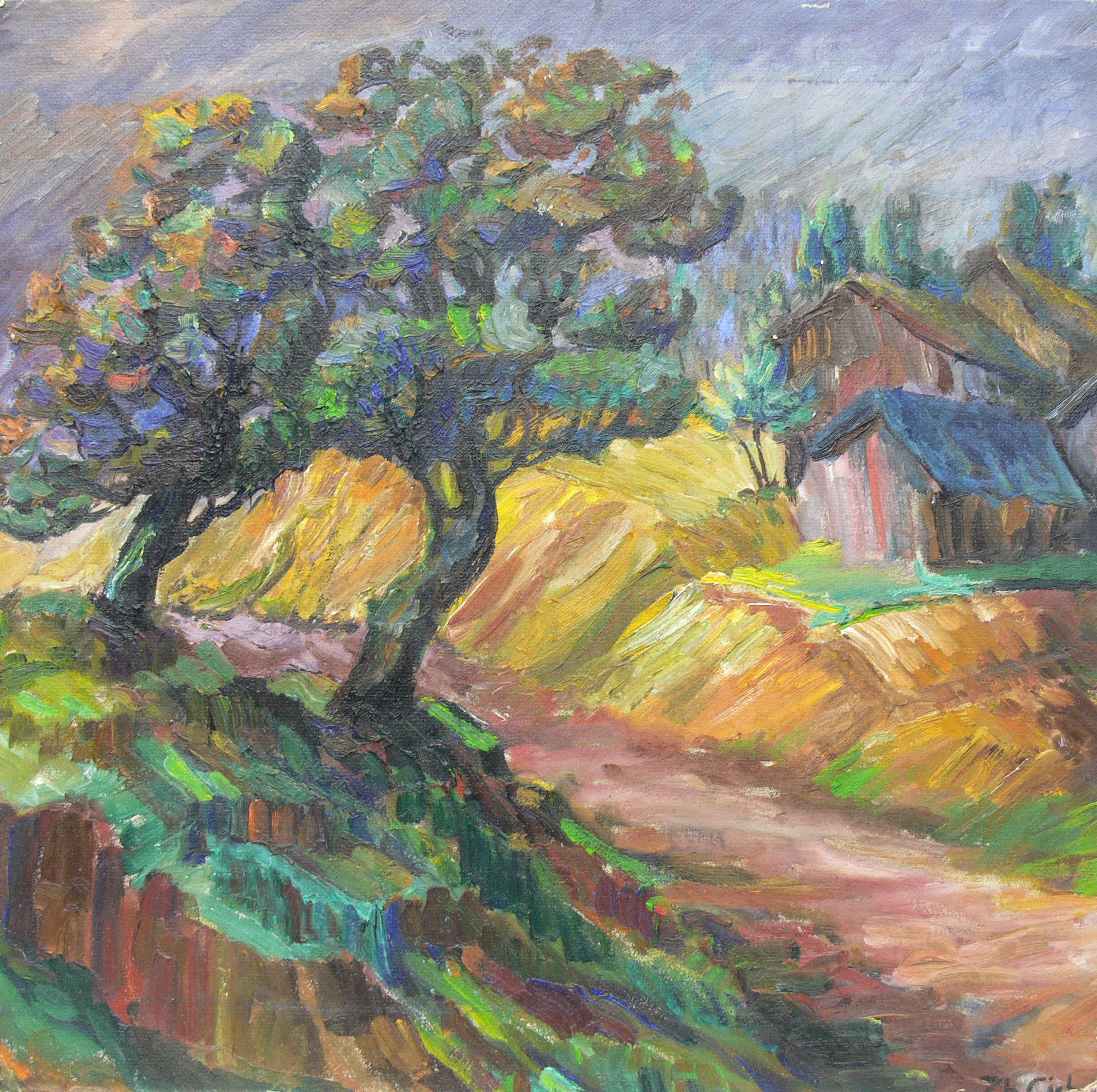 olej, płótno naklejone na karton, 54 x 56 cm