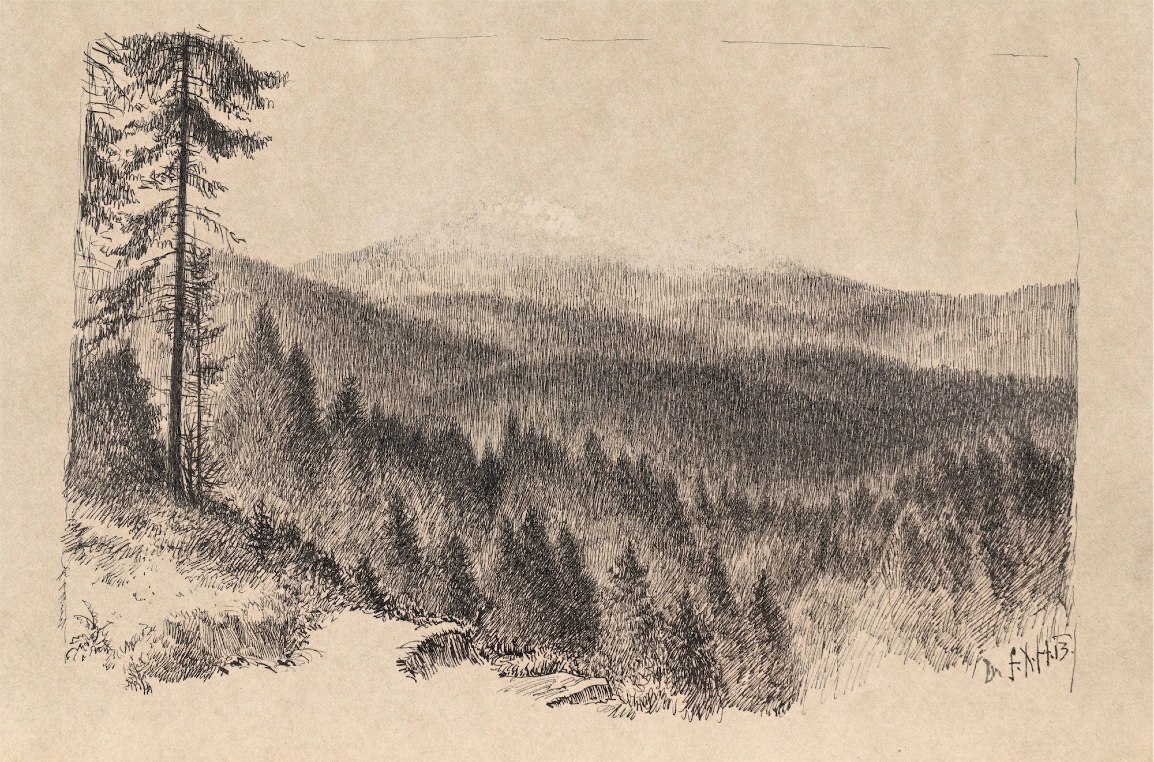 piórko, tusz, papier; 16,7 x 25,7 cm;sygn. oraz dat. p. d.: Dr. F.X. H..13.Szkicownik datuje się na 1913 rok. Na niektórych kartach obok sygnatury widnieje datowanie: 1913 lub 13.