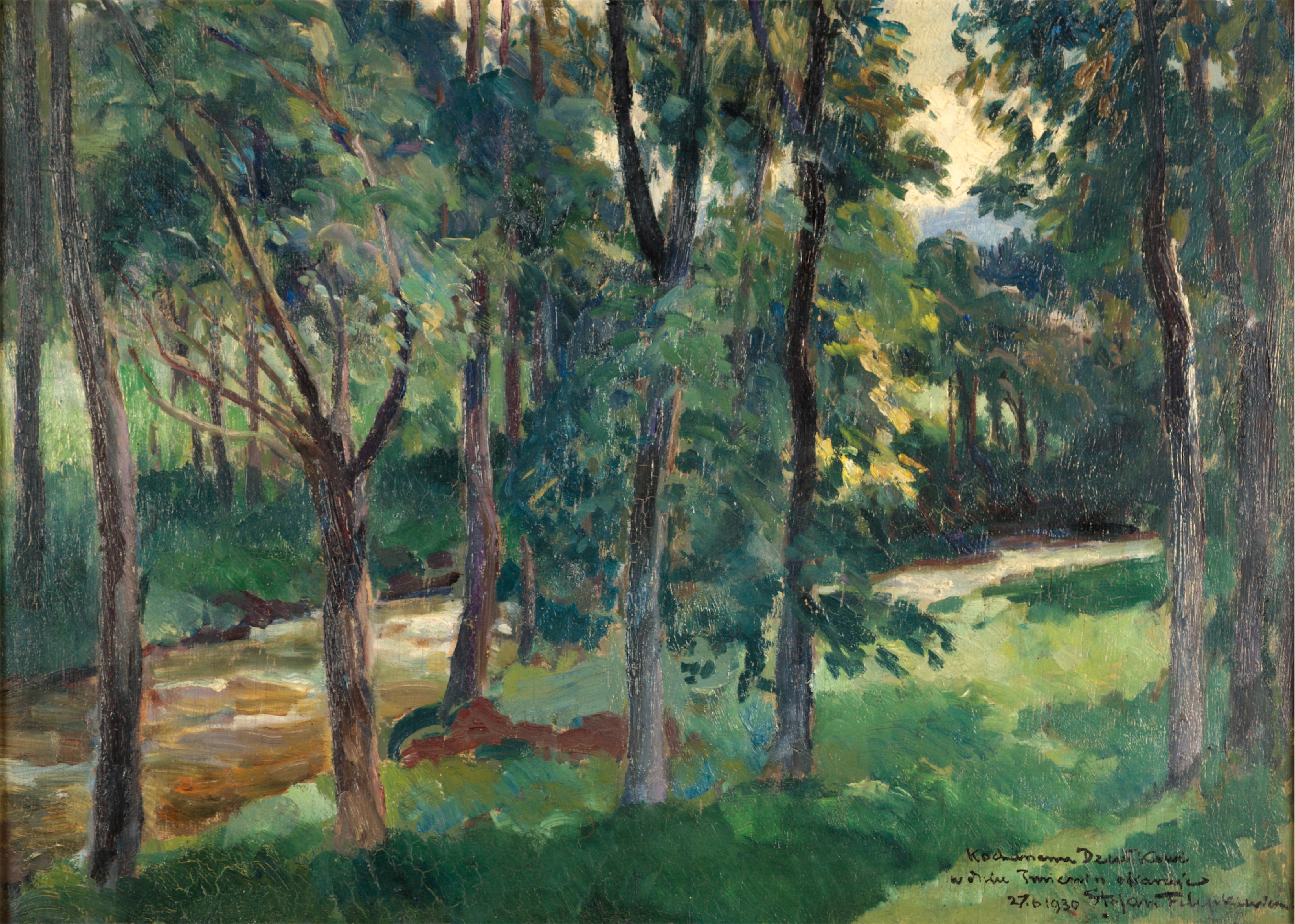 olej, płyta; 33 x 47 cm;sygn., dat. i opis. p. d.: Kochanemu Dziutkowi / w dniu imienin ofiaruję / 27.6.1930 Stefan Filipkiewicz.