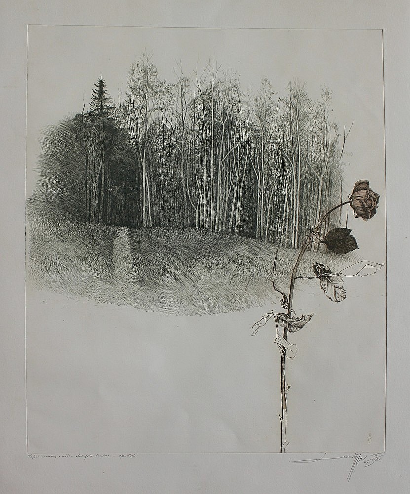 sygn. dat. p.d. LeszekRózga imp. III / 1982 i na płycie p.d. monogramem LR / 82 / IIIakwaforta barwna, akwarela (e.a.)59,5 x 50 cm