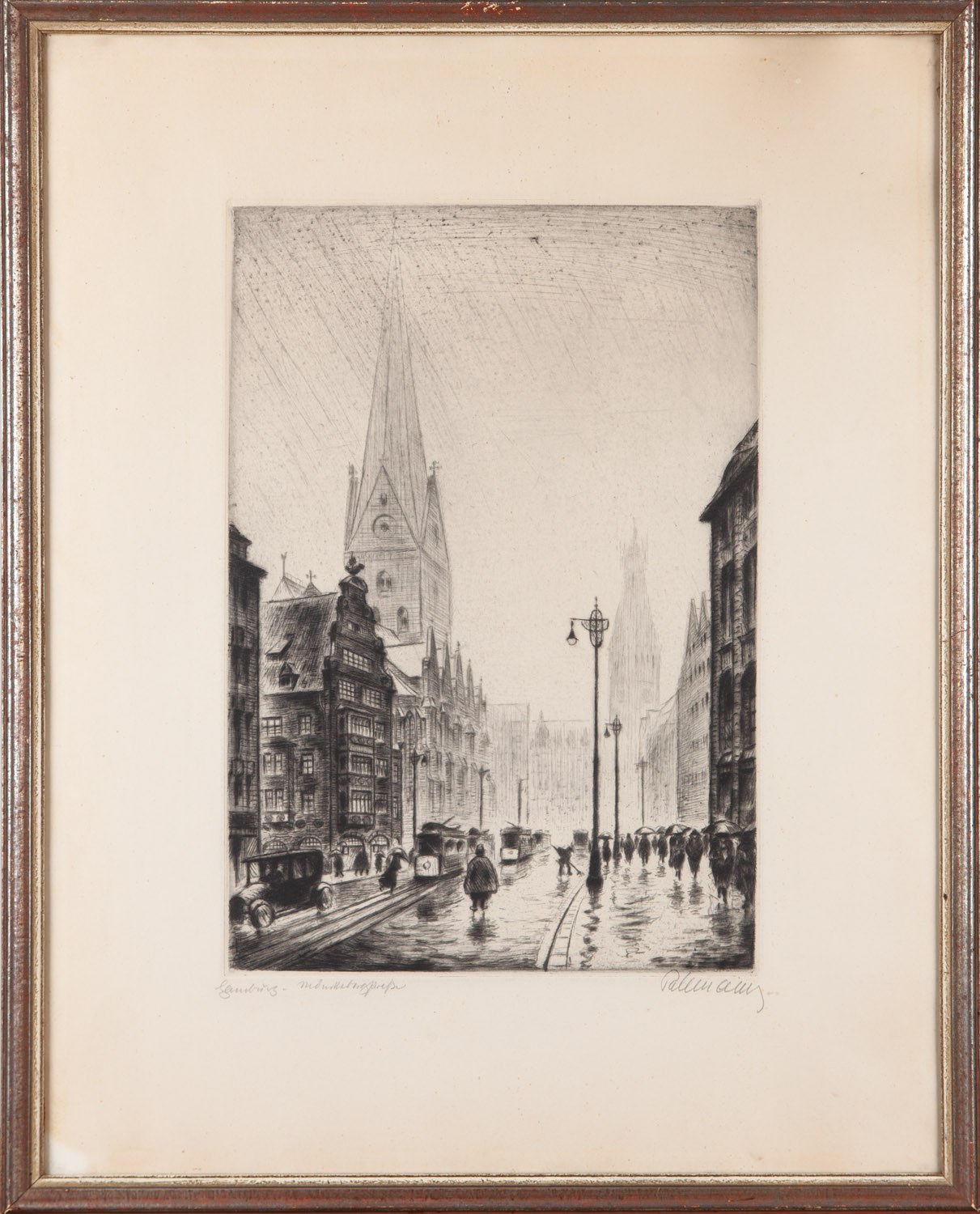 sucha igła, papier, 33,5 x 23 cm (odcisk płyty);opis. l. d. (nieczytelnie);sygn. p. d. (nieczytelnie)