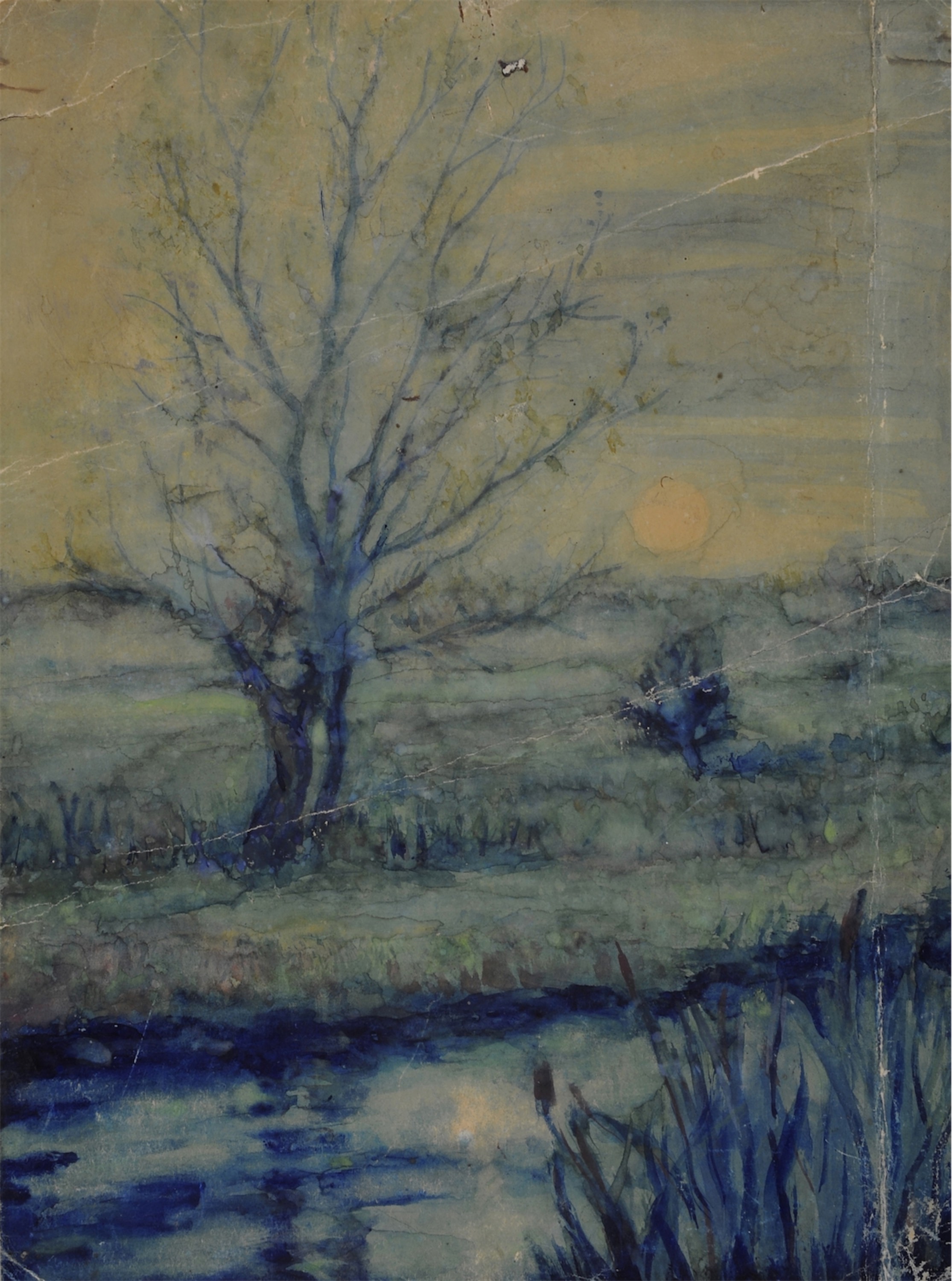 akwarela; karton; 33 x 24,5 cm;na odwrocie odręczny napis autorski: „Mgła idzie” / Musz.Praca pochodzi ze spuścizny po artystce.* opłata droit de suite