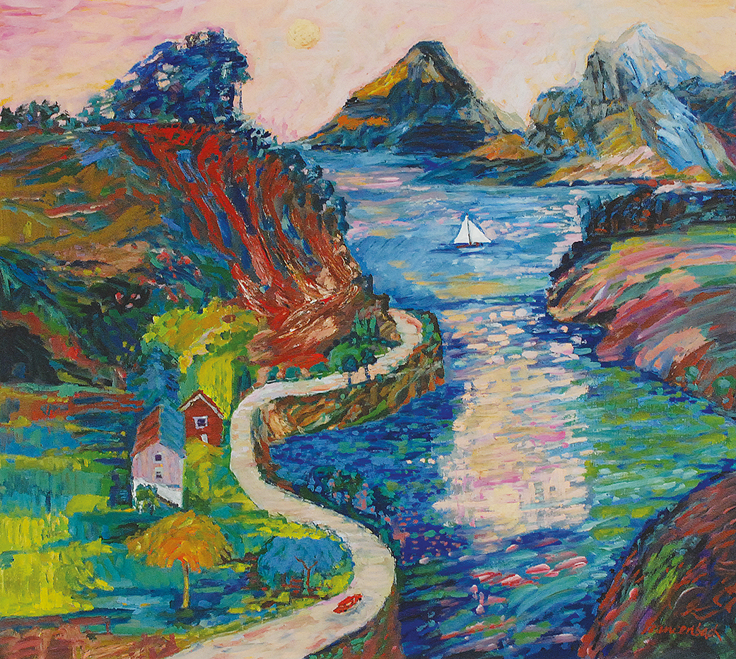 olej, płótno; 85 x 95 cm;sygn. p. d.: Szancenbach;na odwrocie opis autorski: JAN / SZANCENBACH / PEJZAŻ NORWESKI / Z ŁÓDKĄ / 1984.