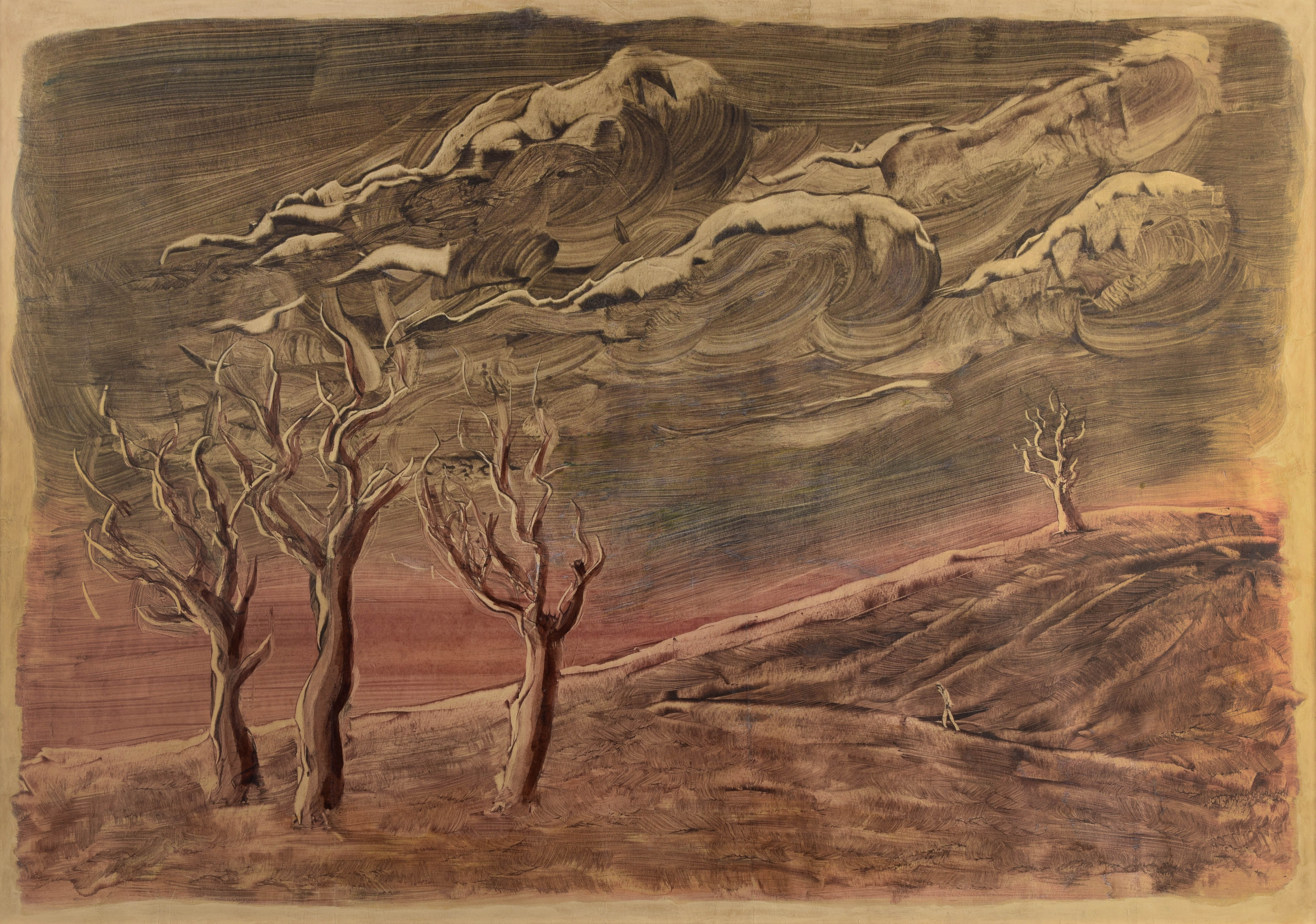 Pejzaż surrealistyczny z drzewami