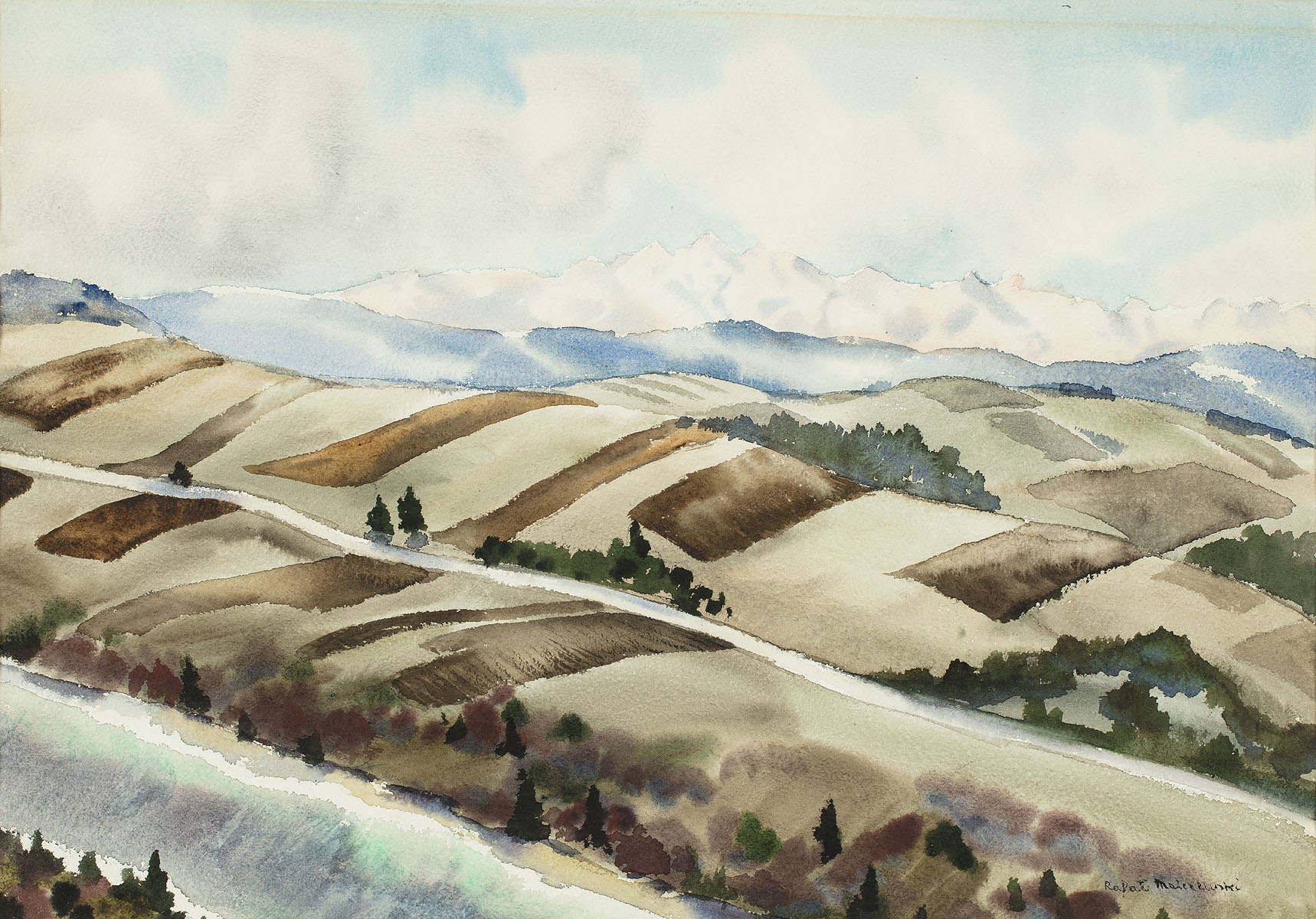 Król A., Tanikowski A. [red.], Kolory tożsamości. Sztuka polska z amerykańskiej kolekcji Toma Podla, wyd. Muzeum Narodowe w Krakowie, Kraków 2001, s. 209 (jako Krajobraz ze sfalowanymi polami).