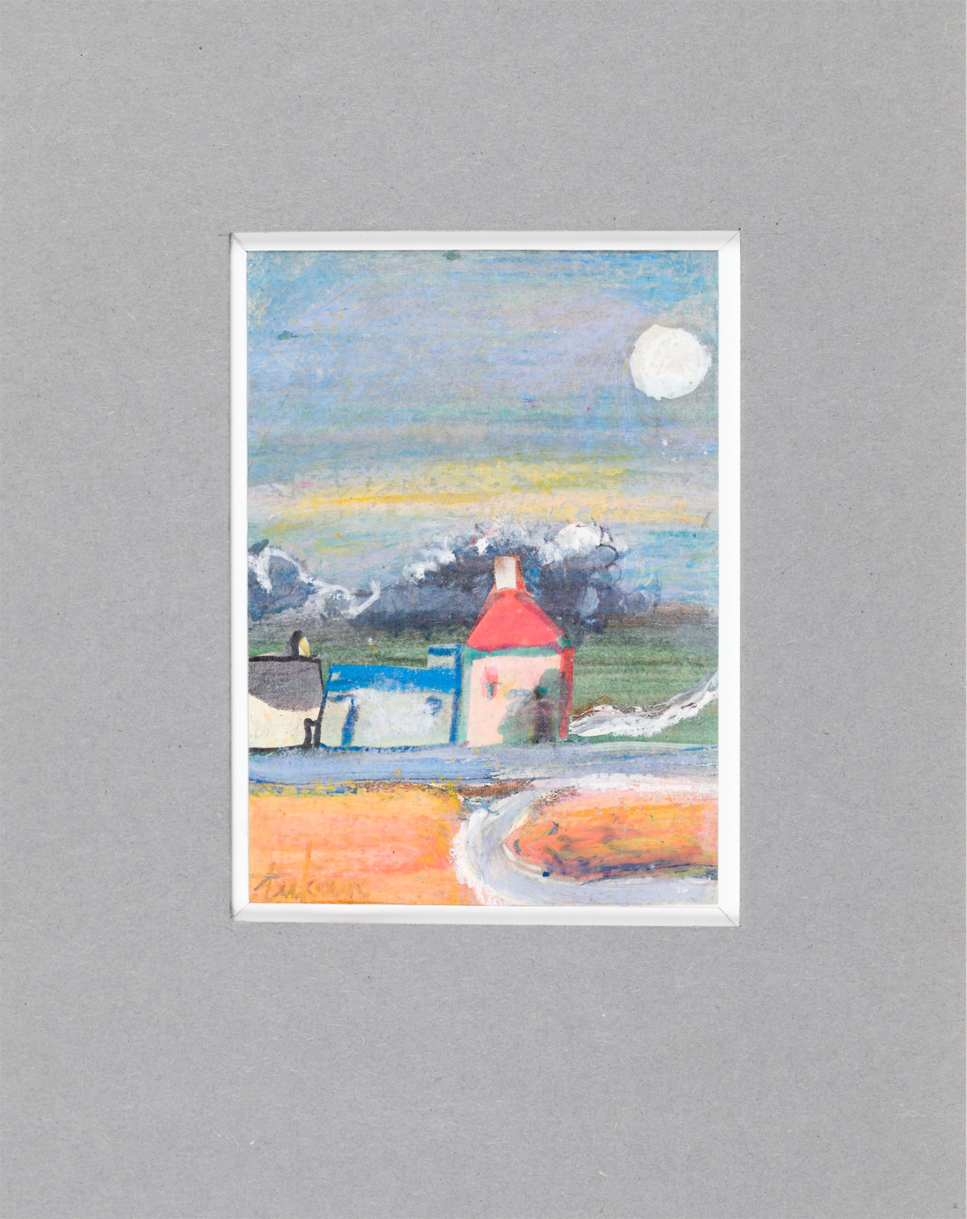 technika mieszana: akryl, akwarela, olejna kredka, papier; 11,6 x 8,6 cm (w św. passe-partout);sygn. l. d.: tukan.