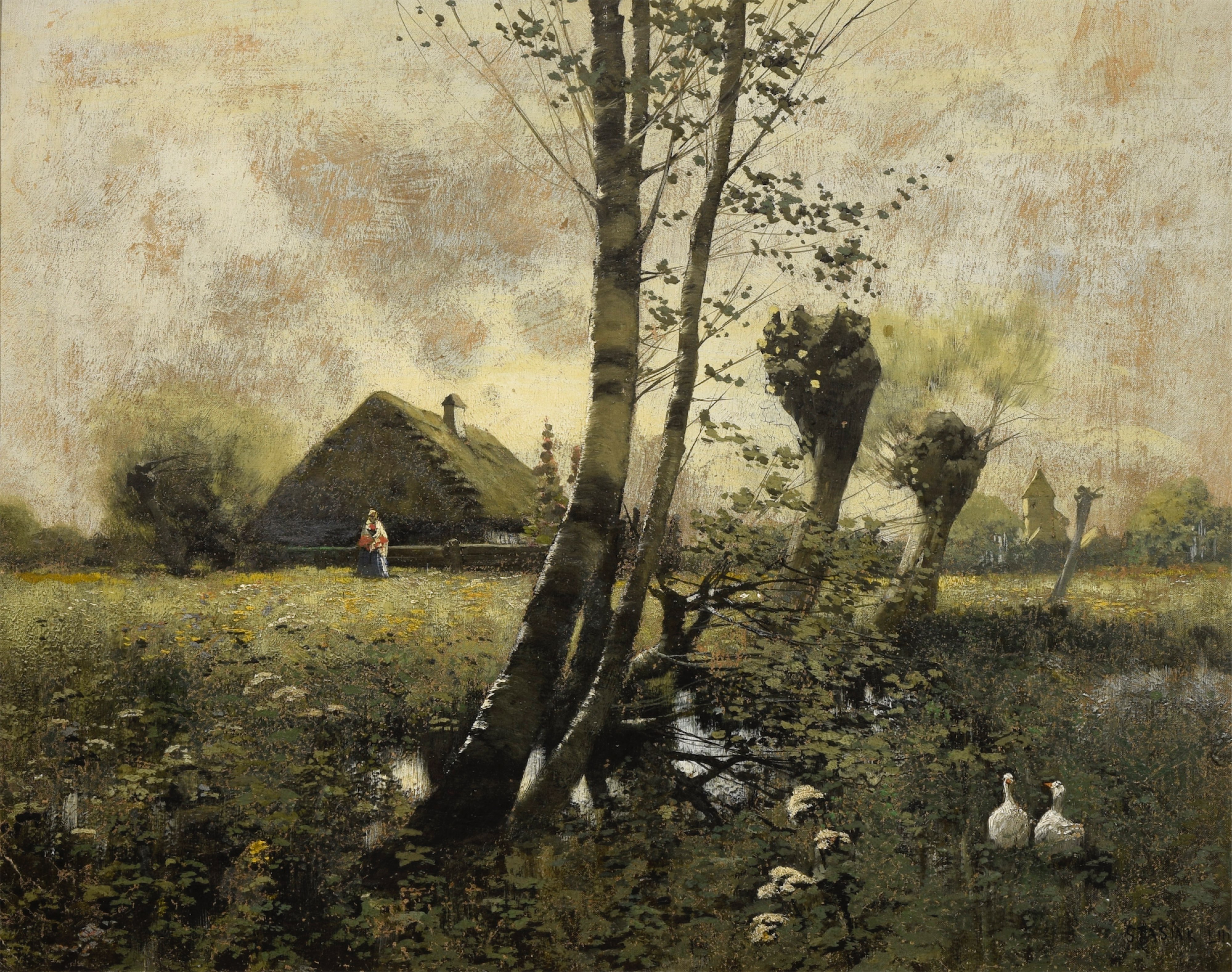 Pejzaż wiejski z gąskami