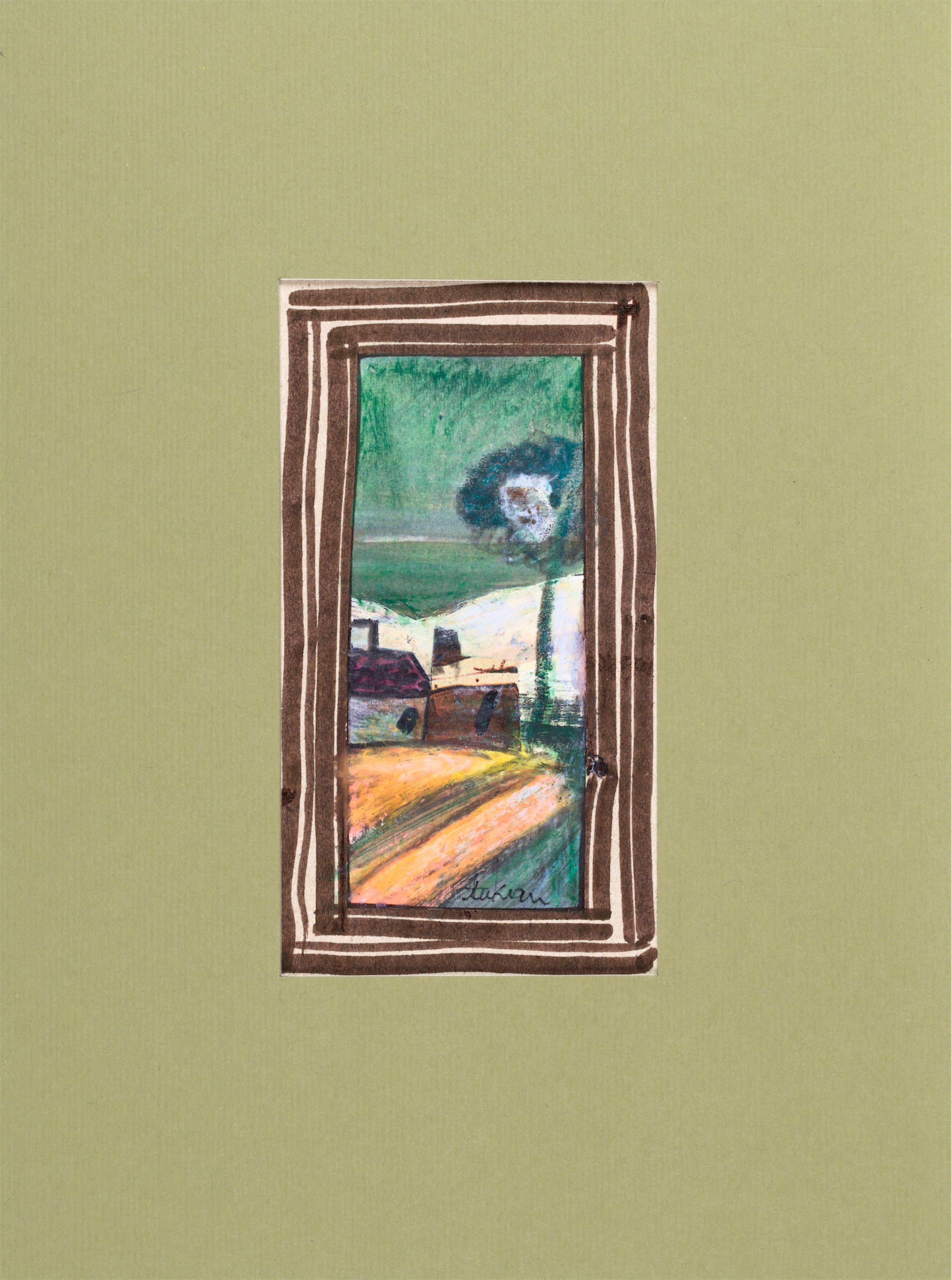 technika mieszana: tusz, akryl, gwasz, kredka, papier; 11,9 x 6,4 cm (w św. passe-partout);