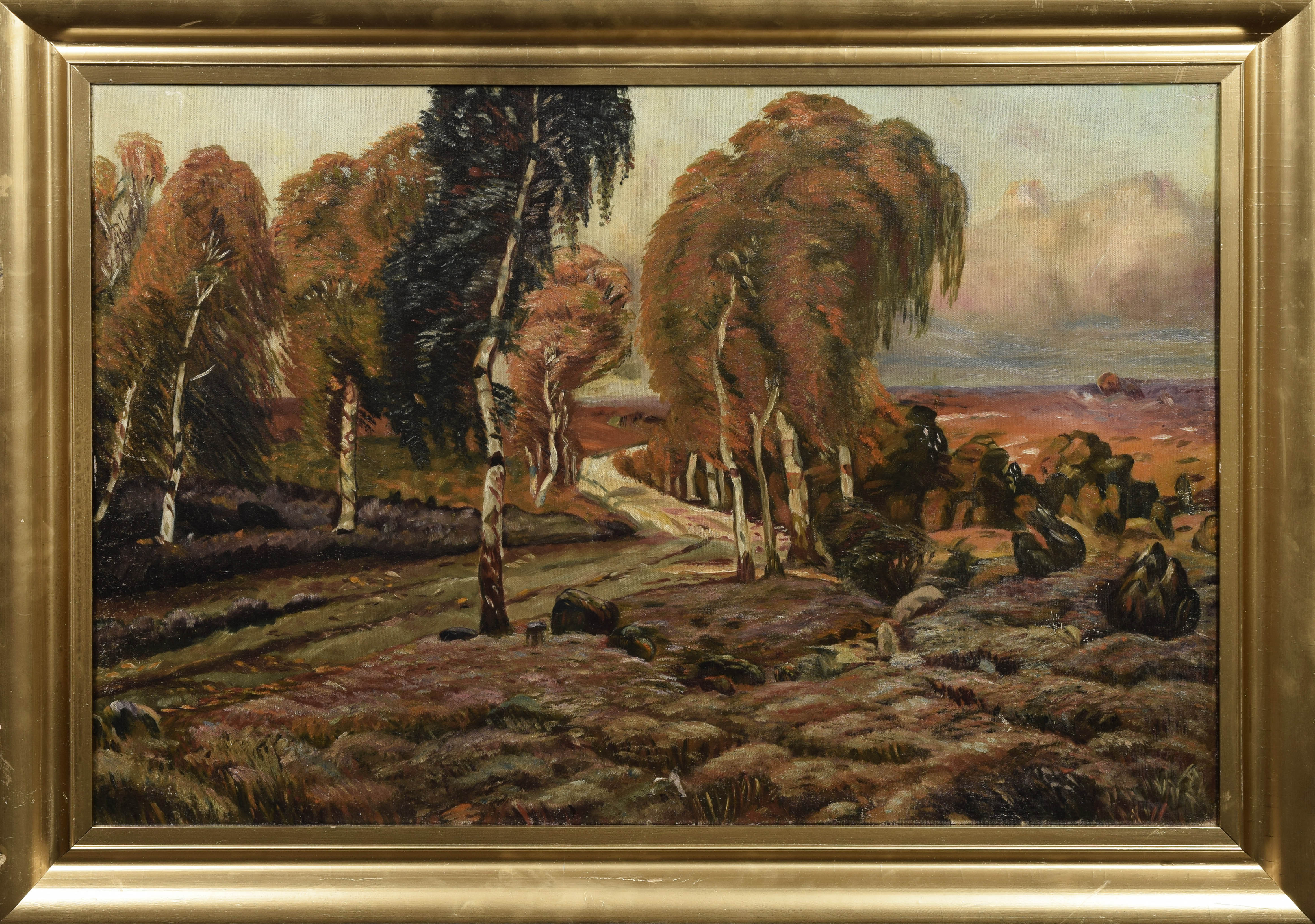 Pejzaż z drogą i brzozami