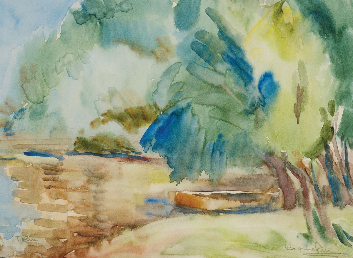 PEJZAŻ Z ŁÓDKĄ NA BRZEGU
