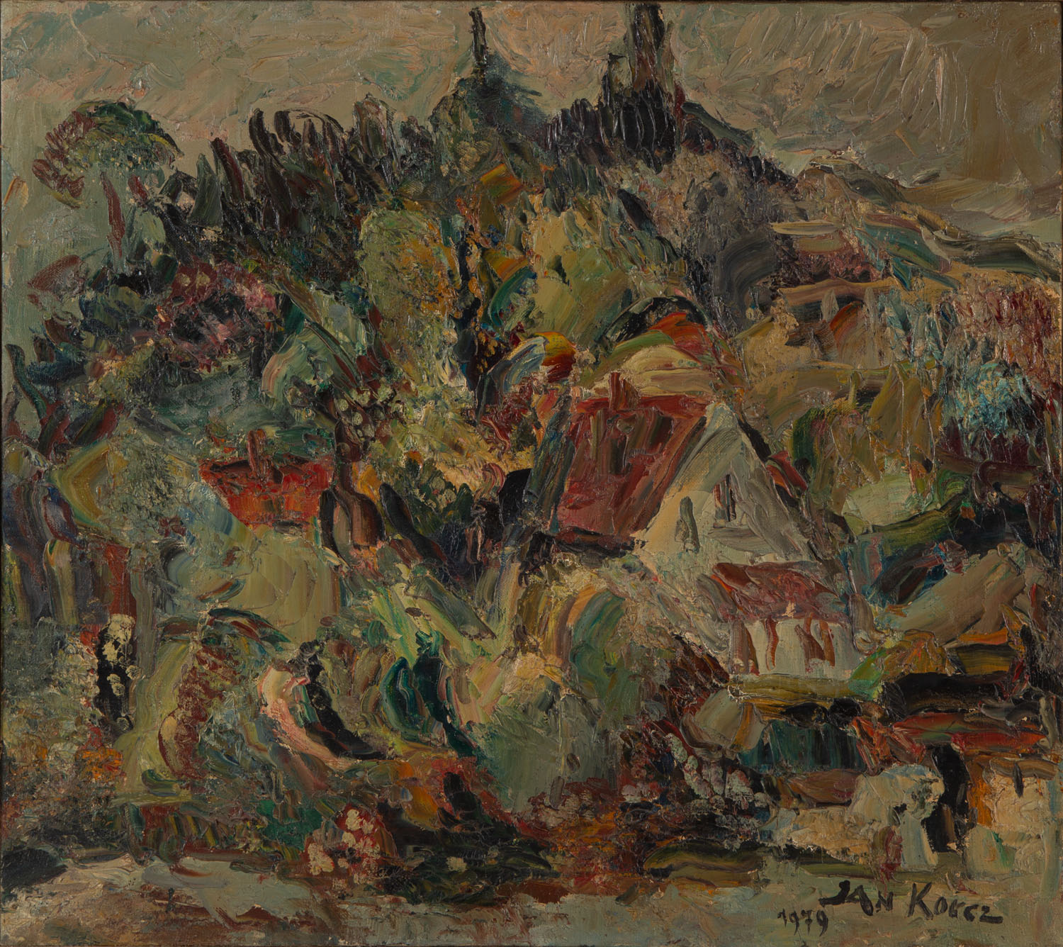 olej/płótno, 62,5 x 69,5 cmsygnowany i datowany p.d.: 'JAN KORCZ | 1979'sygnowany, datowany i opisany na odwrociu: 'JAN KORCZ – Z.P.A.P. | OLEJ – PŁÓTNO | 62.5 x 70 | PEJZAŻ Z OKOLIC GORZOWA WLKP. | 1979 r.'