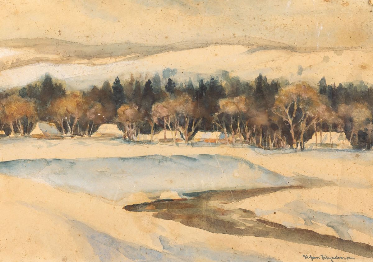 Akwarela, papier naklejony na tekturę; 50 x 34,5 cm