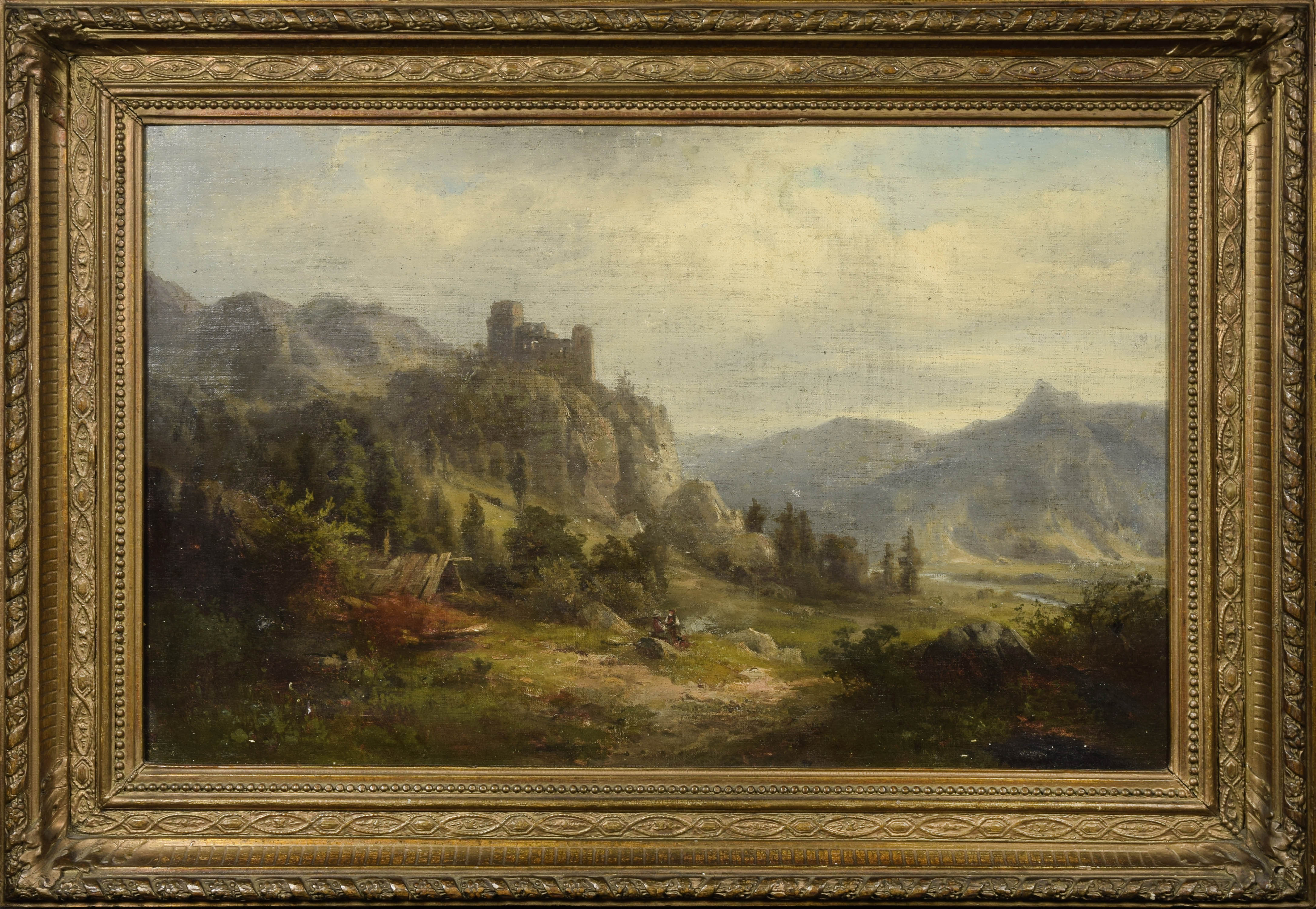 olej, płótno dublowane; 50 x 76,5 cm; na odwrocie, na płótnie i ramie ślady lub pozostałości nalepek, oraz numer, na krośnie malarskim owalny stempel (trawiony w drewnie), prawdopodobnie berlińskiego składu przyborów malarskich.