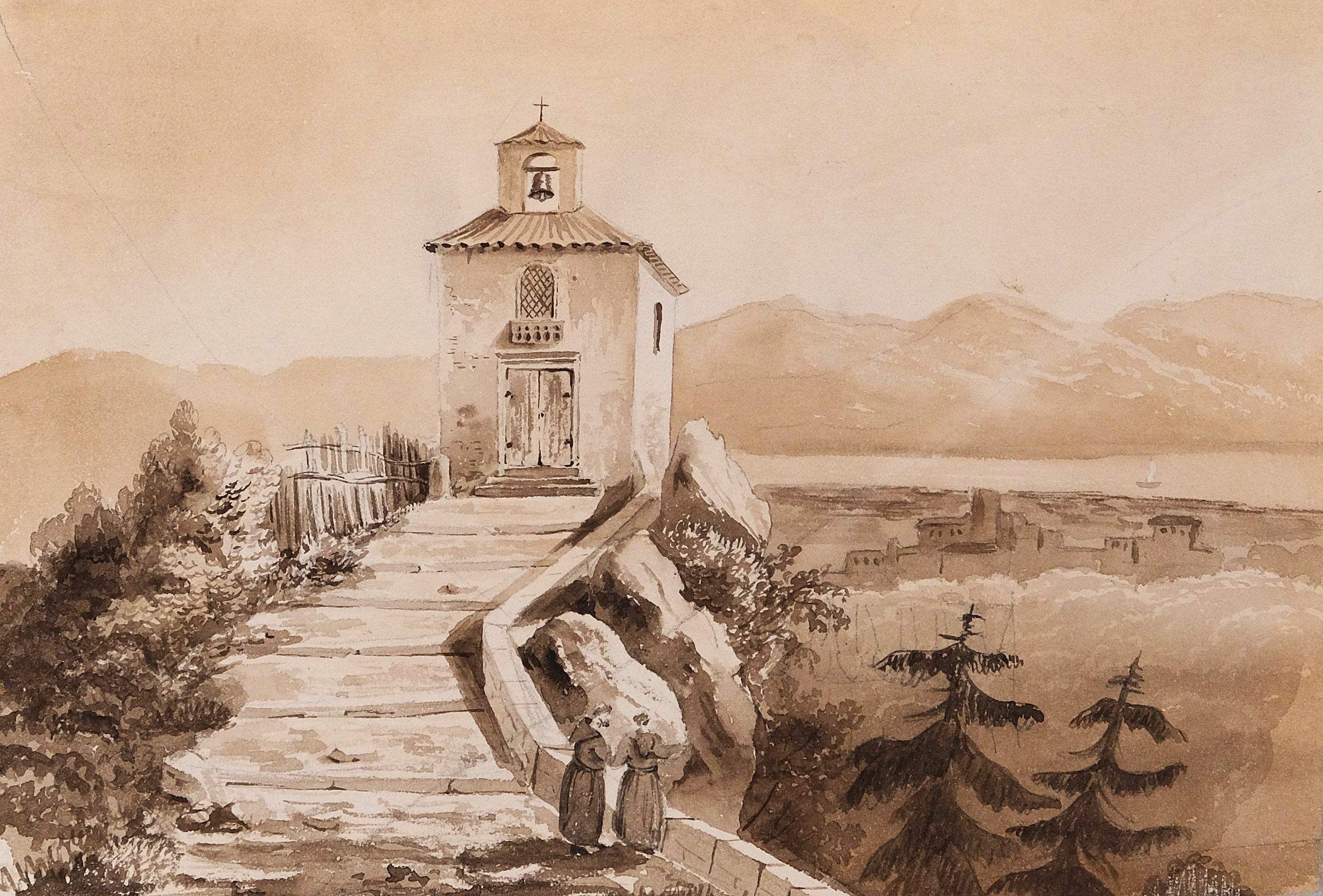 Pejzaż z Włoch, rozmowa mnichów / Plener przed zamkiem
