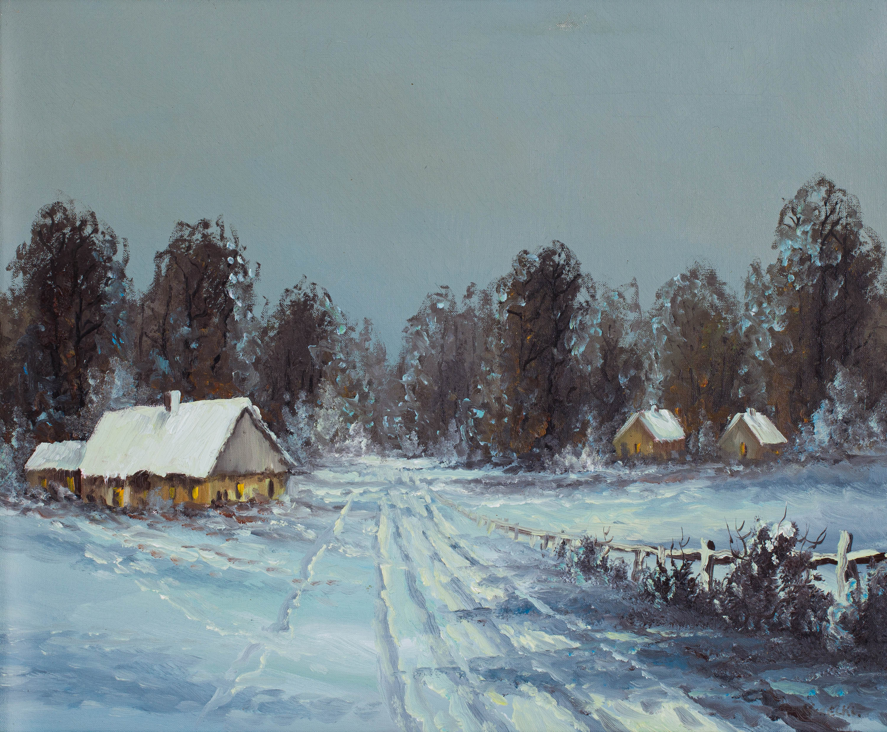 Pejzaż zimowy z chatami