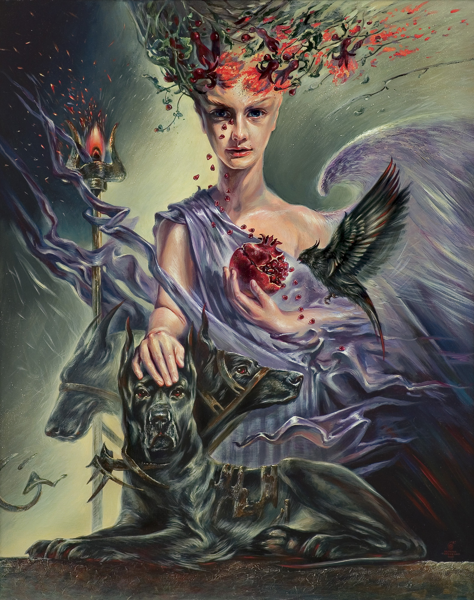 akryl, płótno100 x 80 cmsygn. p.d.: [monogram] | ULYANA | TURCHENKO | 2021sygn. na odwr. na płótnie: ULYANA TURCHENKO | „PERSEFONA“ | 100 x 80 2021