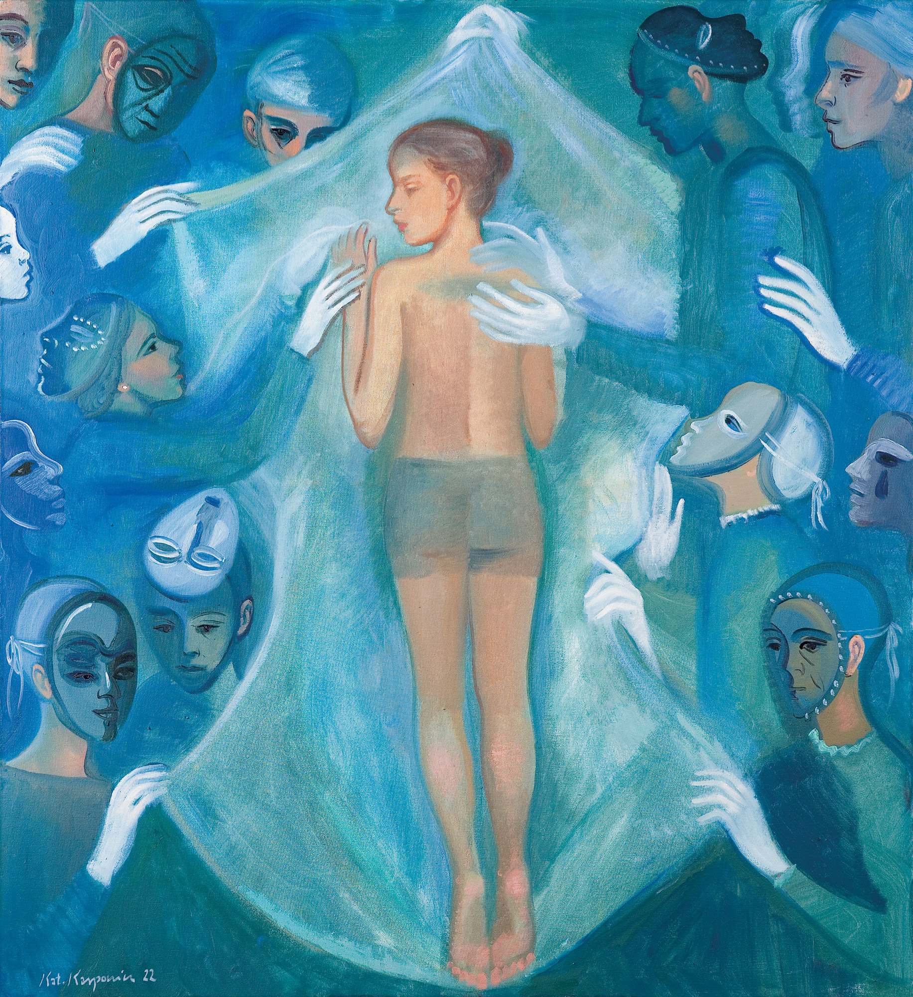sygn. na odwr. l.: KATARZYNA | KARPOWICZ | „PIĘKNA | OPERACJA“ | olej/płótno | 2022, p.g.: znak serca