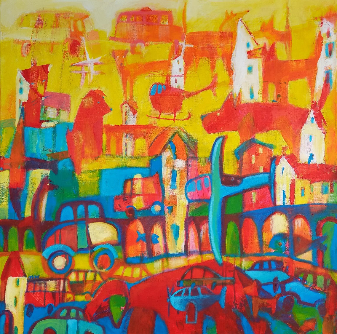akryl/płótno, 90 x 90 cm,sygnowany l.d: 'nw',sygnowany, datowany i opisany na odwrociu: 'Natalia Nasada-Wojtal ,,Pieskie życie,, 2021'