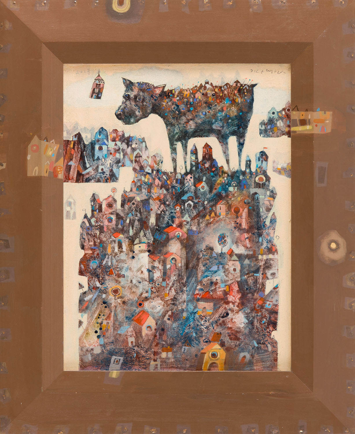 olej/płótno, 40 x 30 cm (w świetle oprawy)sygnowany p.g.: 'SKRZYPEK' i datowany l.g.: '2017'na odwrociu opisany: 'GRZEGORZ | SKRZYPEK | 2017 | "PIESOSTWÓR" | 40 x 30 cm | OLEJ PŁÓTNO'
