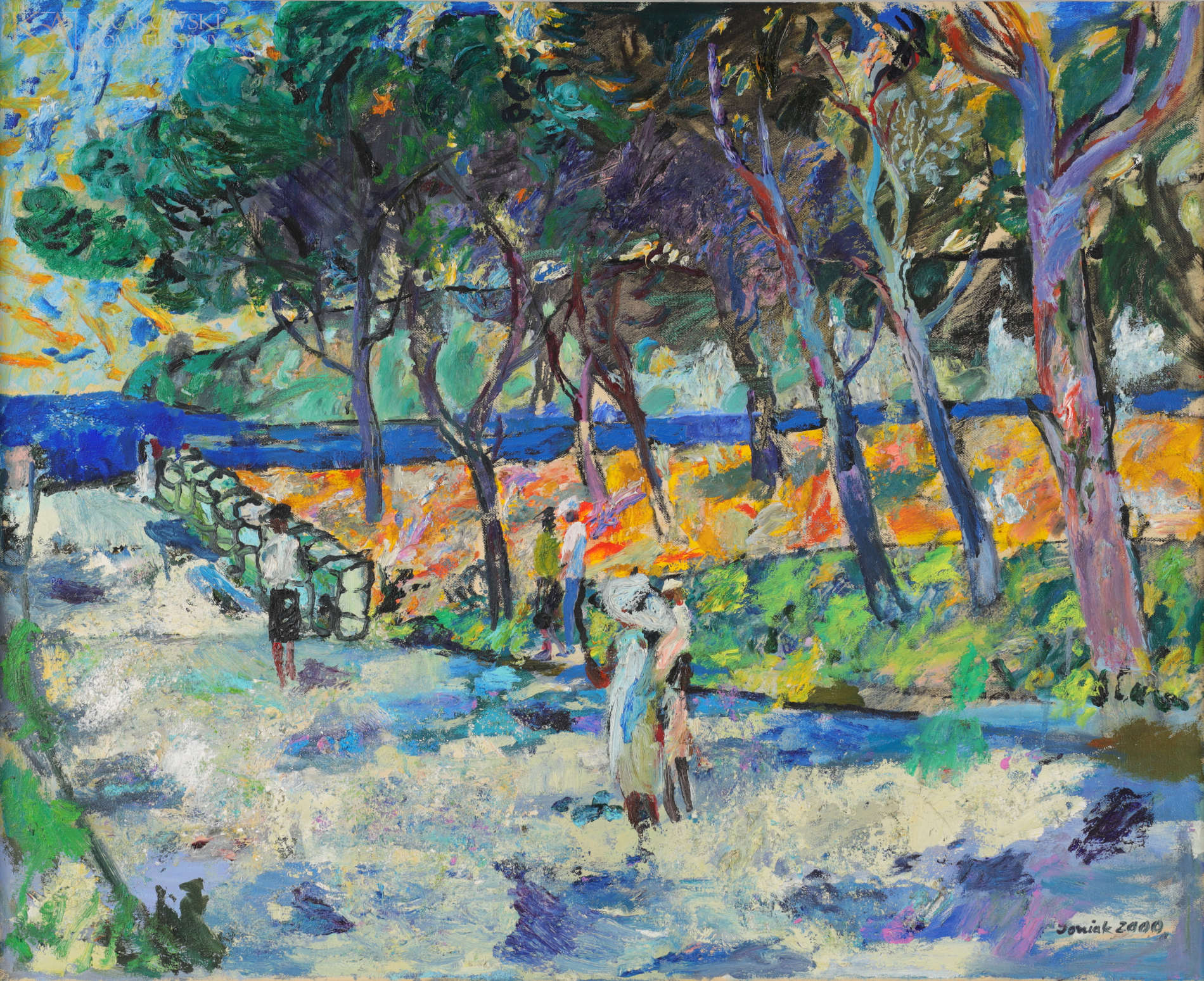 olej, płótno 75,5 x 92 cm; 88 x 105 cm (z oprawą) Sygn. i dat. p.d.: "Joniak 2000" Opisany na odwrocie: "JULIUSZ JONIAK | Pinie w Cadaques’2000 | 75 x 92 | 2000"