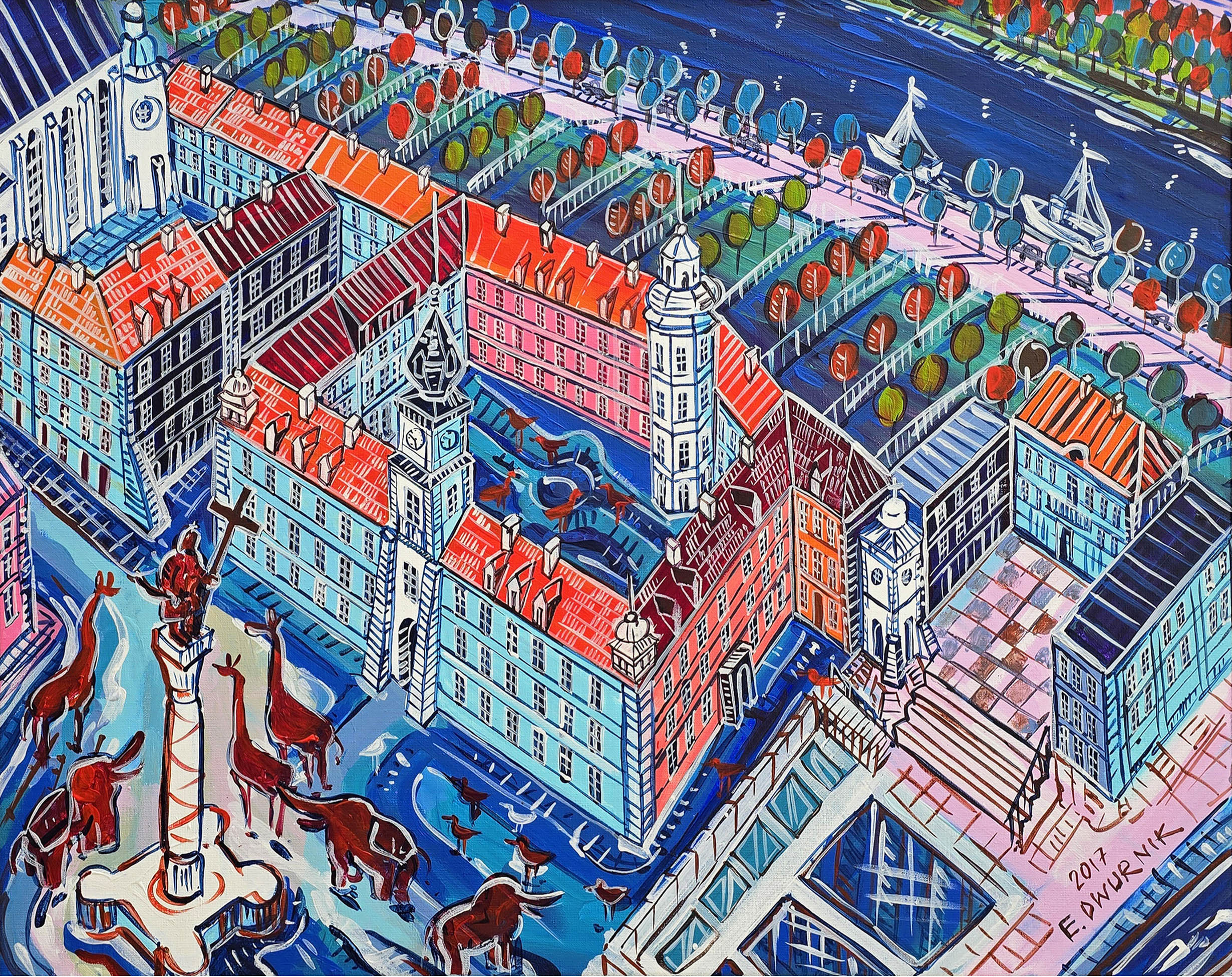 sygnowany, datowany i opisany na odwrocie: 2017 / E. DWURNIK/ ''PLAC ZAMKOWY'' / NR: XI - 824 - 7044;