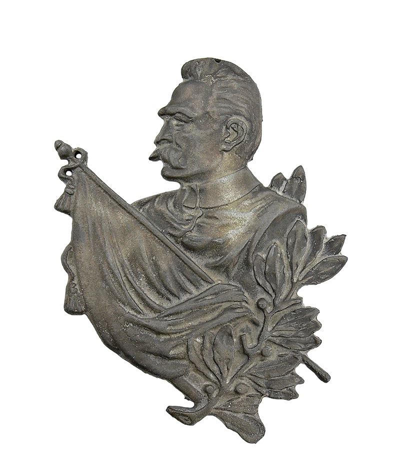 Kup abonament Wykup abonament, aby zobaczyć więcej informacjiPlakieta przedstawia Józefa Piłsudskiego z profilu, na tle sztandaru i gałązki oliwnej. Na odwrocie orzeł legionowy z tarczą amazonek oraz daty urodzin i śmierci 1867-1935.