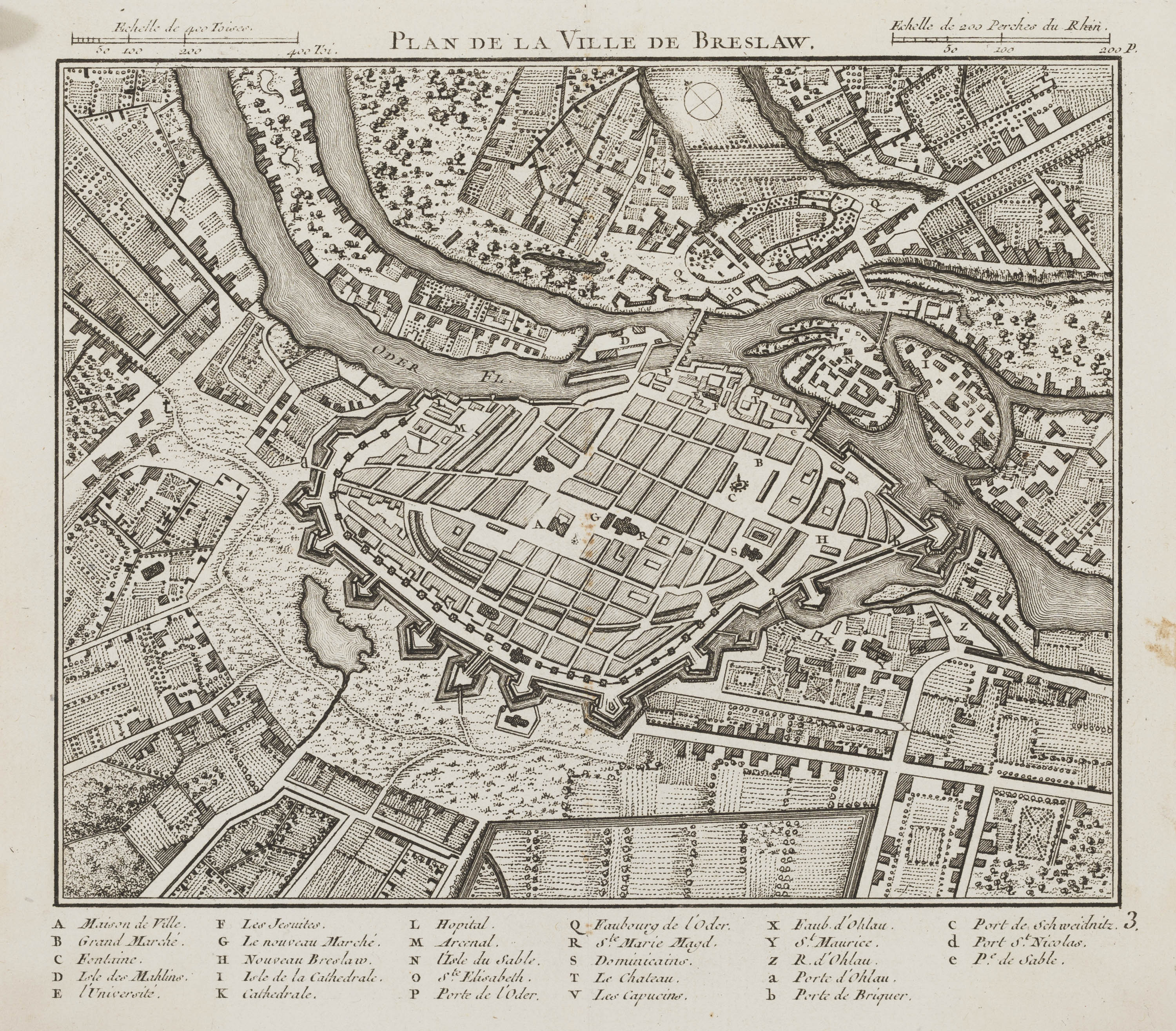 Plan Wrocławia pochodzący z „Theatre de la guerre presente en Allemagne”, 1758