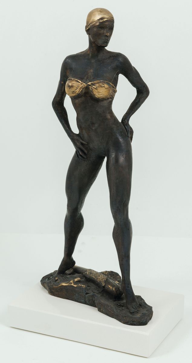 Brąz, wys. 34,5 cm, podstawa kamiennaSygnowany: P. BubakNa podstawie: Piotr Bubak / „Pływaczka” / 2021 6/8