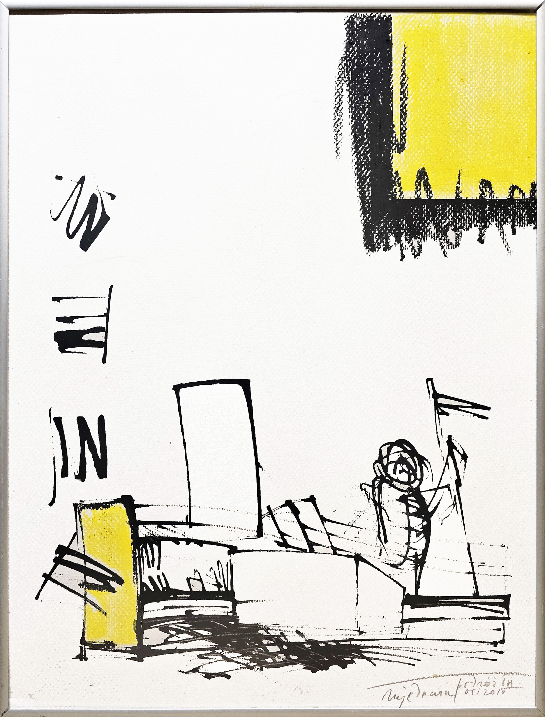 technika mieszana (kredka, tempera), papier, 47 x 35 cm, sygn., dat. i opisany w kompozycji, ołówkiem, p.d.: Michał Jędrczak Podróż III 05/2010, na odwrocie nalepka autorska; obraz oprawiony