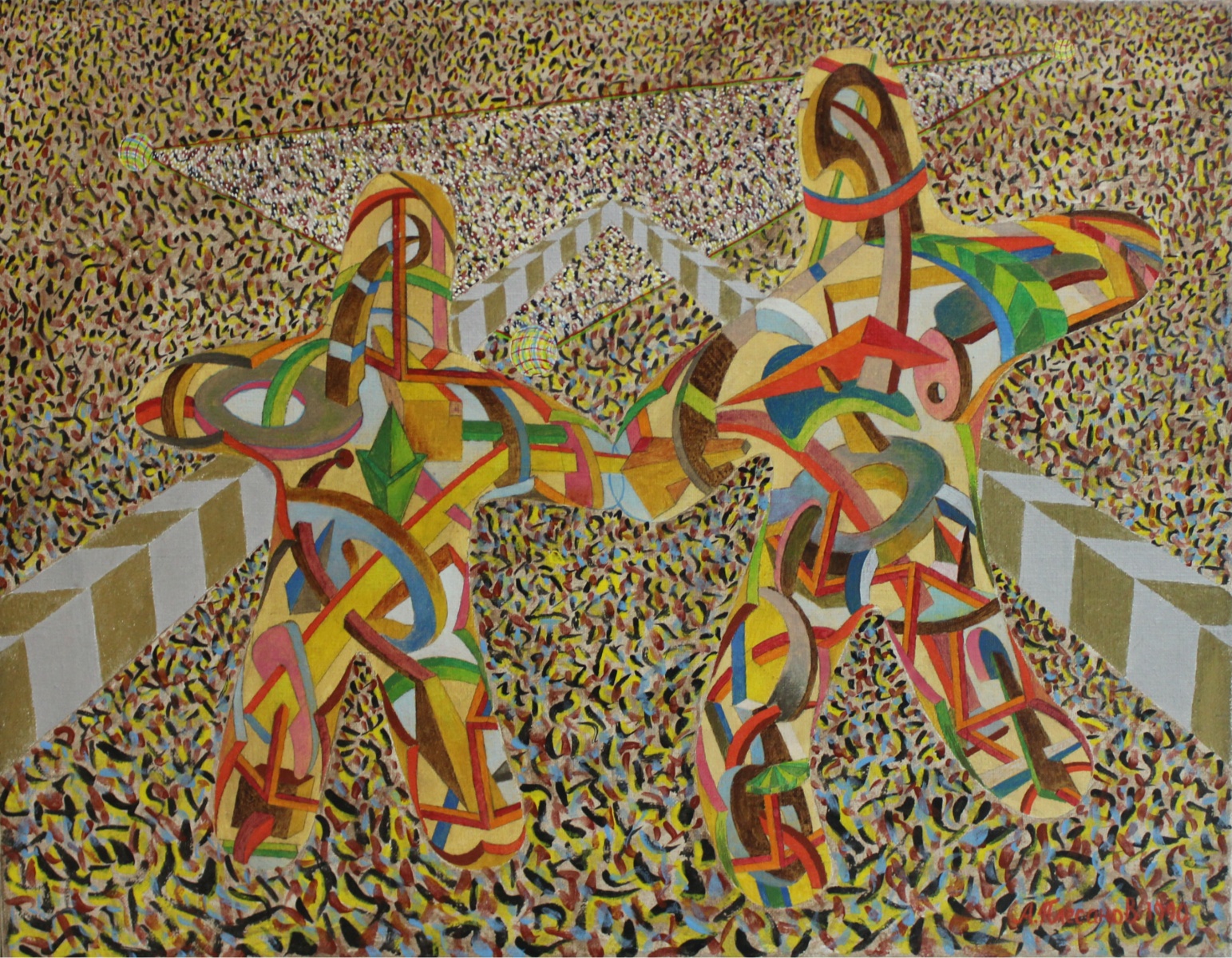 technika własna na płótnie, 46 x 61 cm, sygnowany