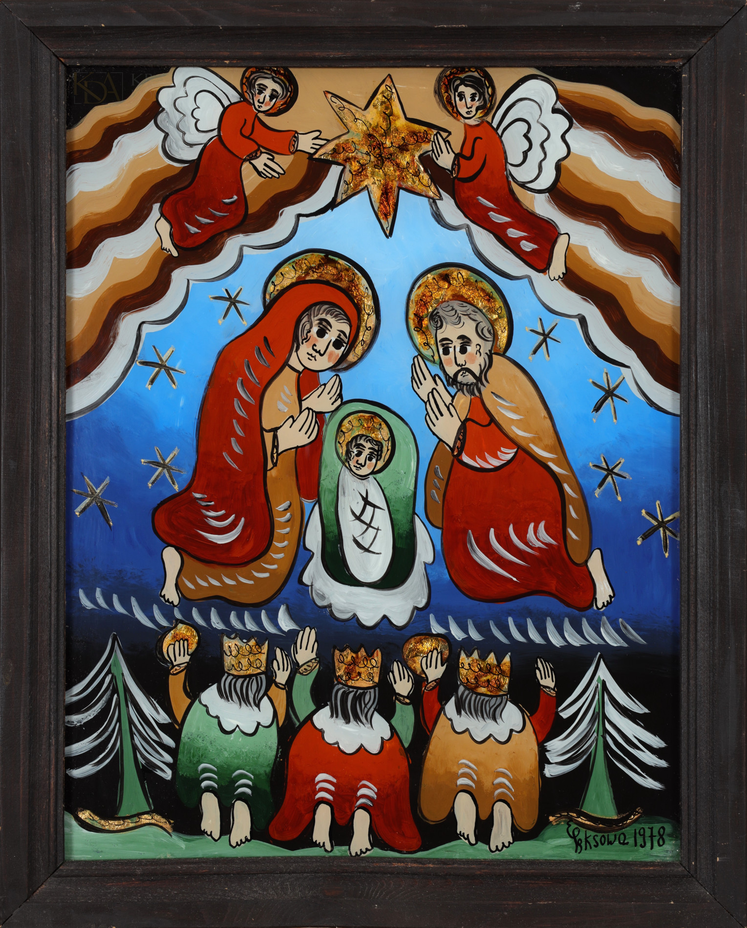 malarstwo na szkle46 x 37 cm (z oprawą)Sygn. i dat. p.d.: "EPęksowa 1978"Opisany na odwrocie: "Ewelina Pęksowa | ZAKOPANE"Na odwrocie dedykacja autorska z 1982 roku.
