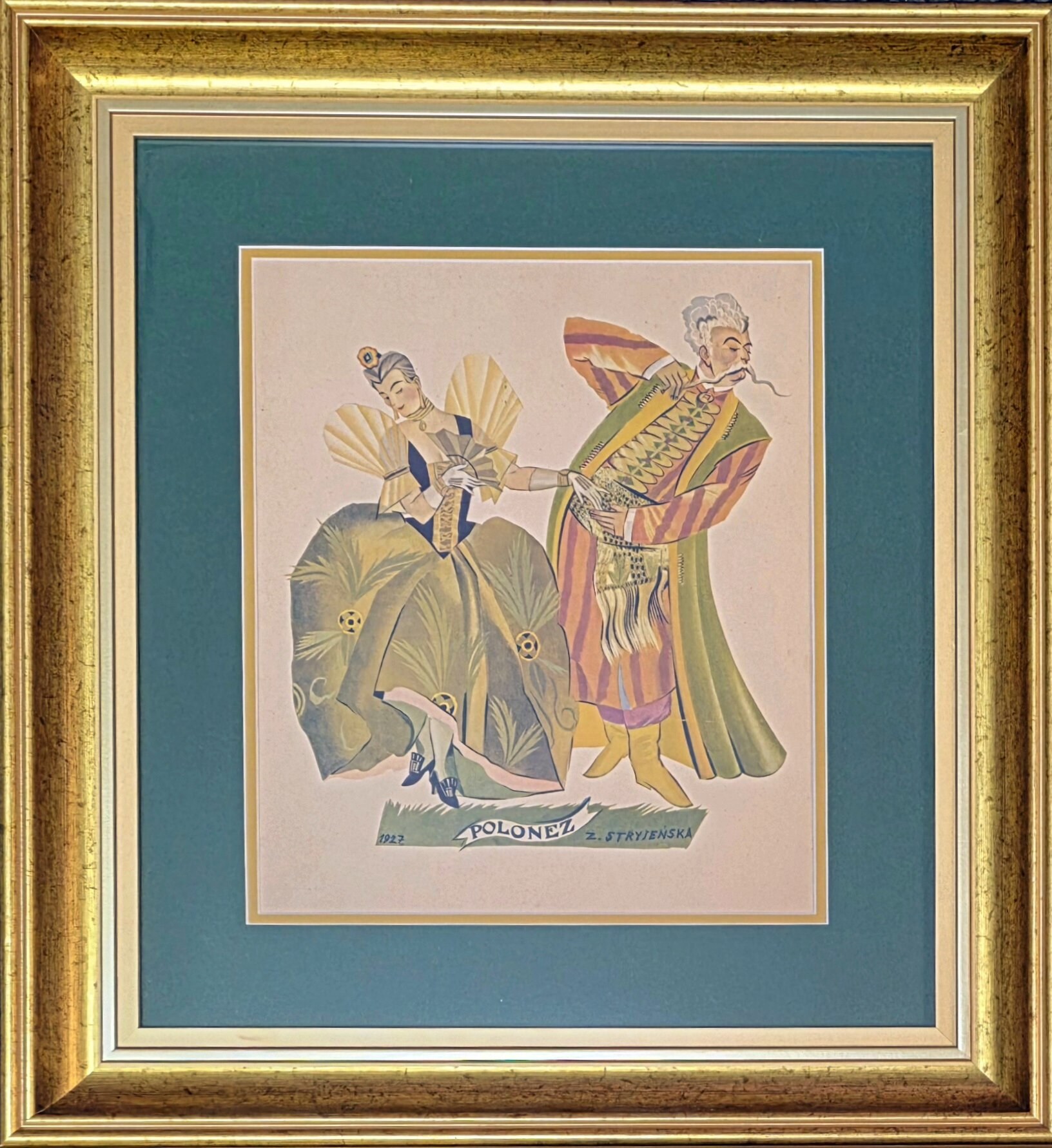 Rotograwiura, papier, 39 x 29 cm, plus oprawa Sygn. na pł. „Z. STRYJEŃSKA” i dat. „1927”. Grafika pochodzi z teki: „Tańce polskie” 11 wielobarwnych rotograwjur / Zofja Stryjeńska ; słowo wstępne […] Artur Schroeder. [1929].