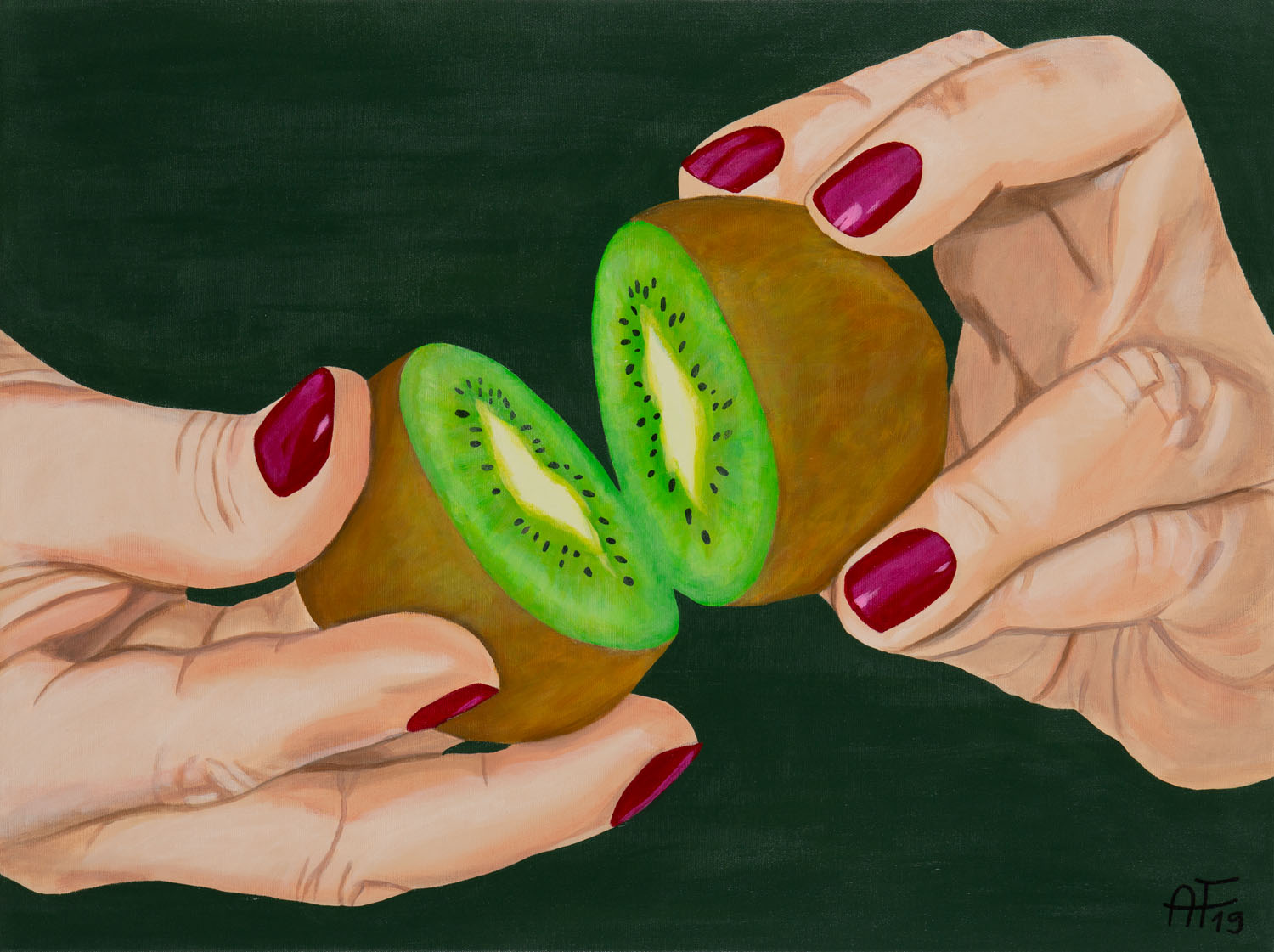 akryl/płótno, 60 x 80 cmsygnowany i datowany p.d.: 'AF19'na odwrociu opisany: 'Anna Franczuk | "Połówki" / "Halves" | Akryl na płótnie | 60 x 80 cm | 2019 r.'