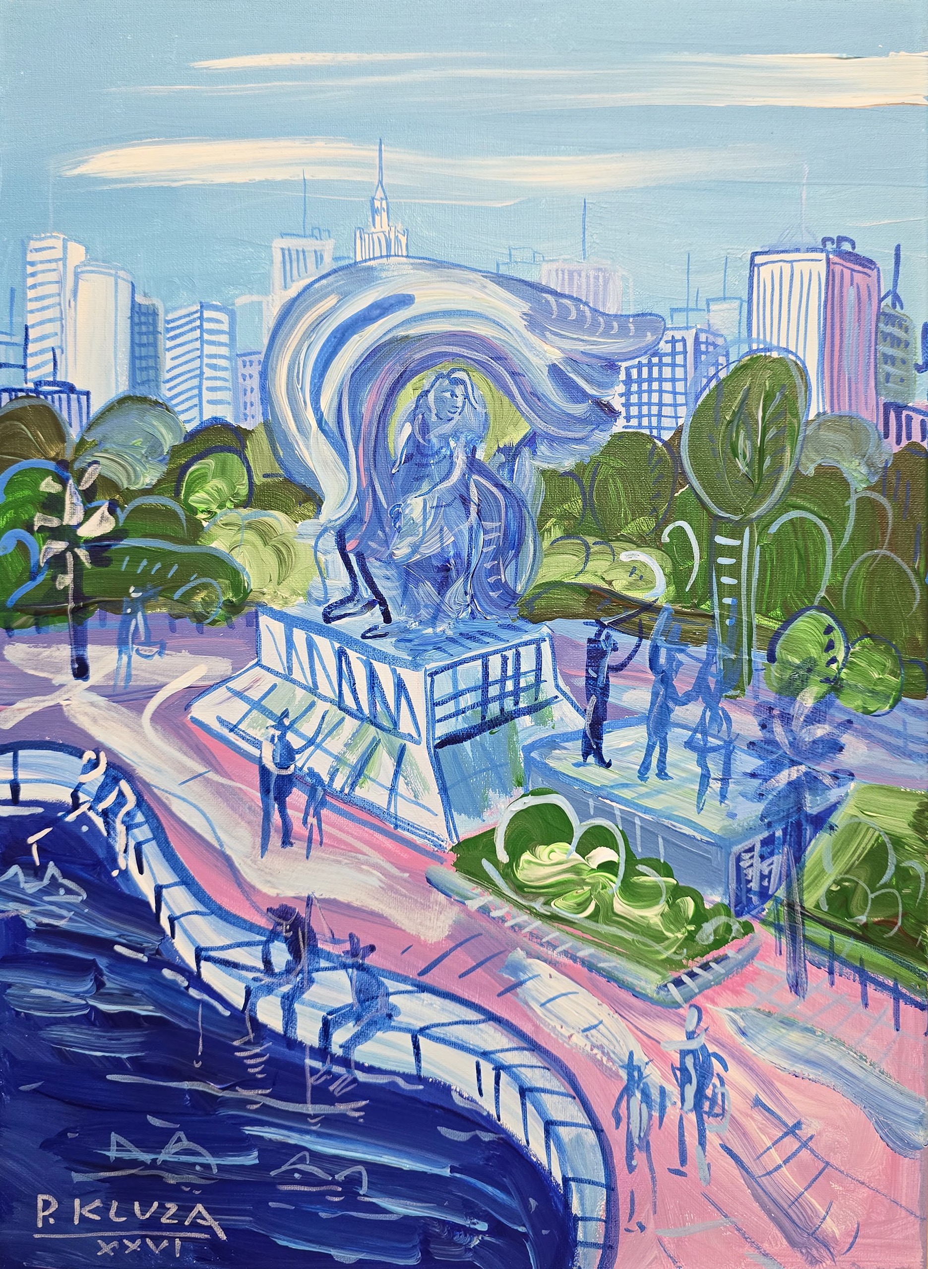 akryl na płótnie, 24 cm x 33 cm;sygnowany z przodu, p.d.: P.KLUZA / XXV;sygnowany, datowany i opisany na odwrocie: P.KLUZA/ ''Pomnik Chopina''/ NR: 4854 / XXVI;dołączony certyfikat autorski