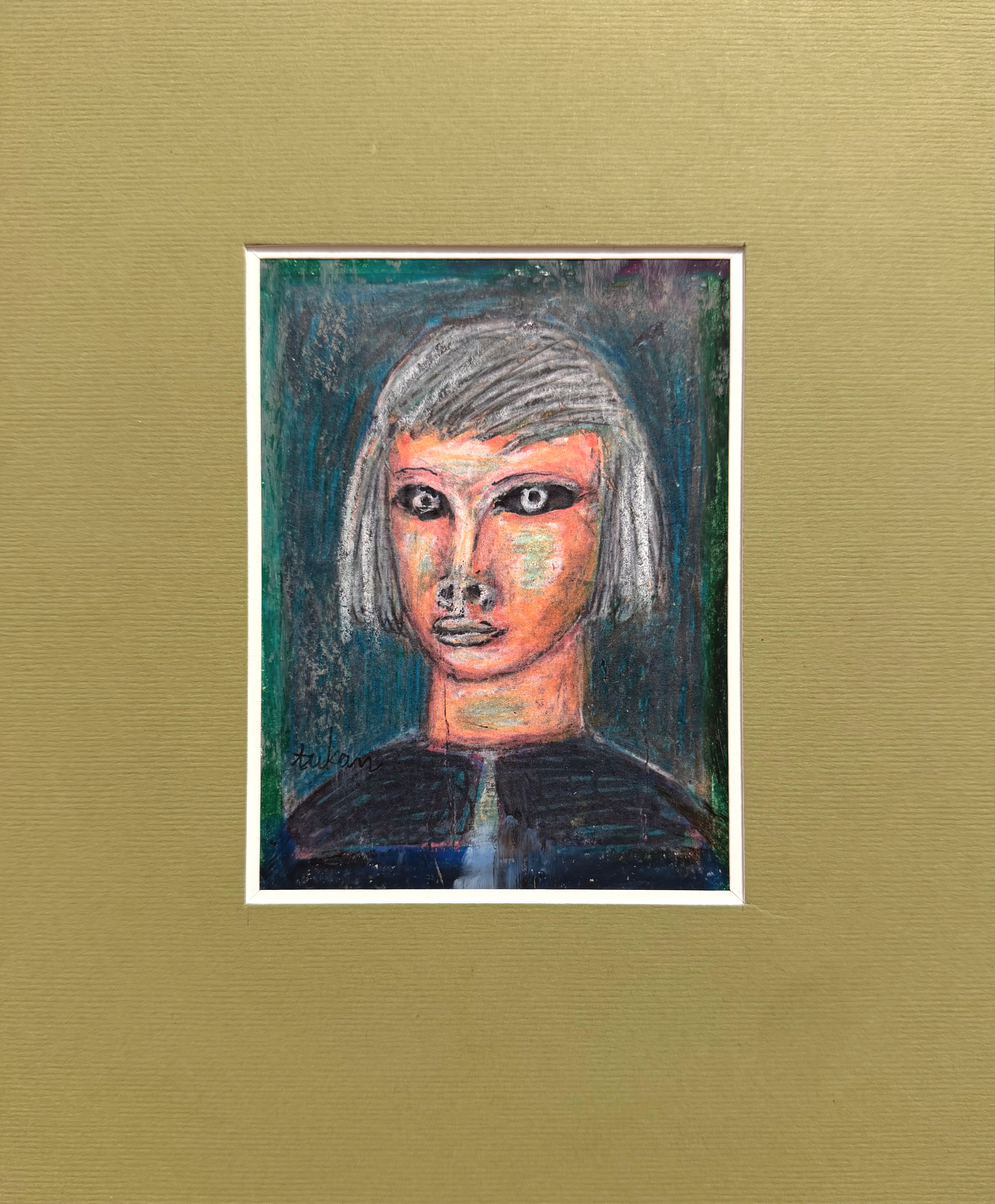 technika mieszana: tusz niezmywalny, olejna kredka, akwarela, akryl, papier; 12,9 x 9,7 cm (w św. passe-partout);