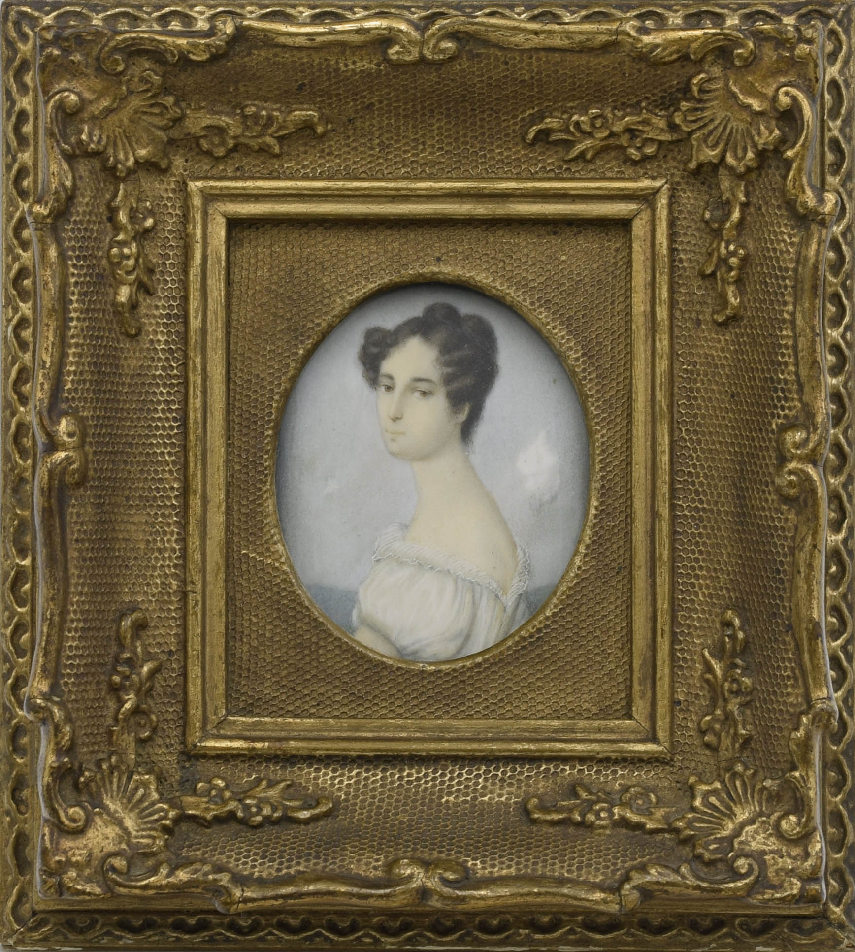 gwasz, kość zwierzęca?; 6 x 5 cm (w świetle oprawy);