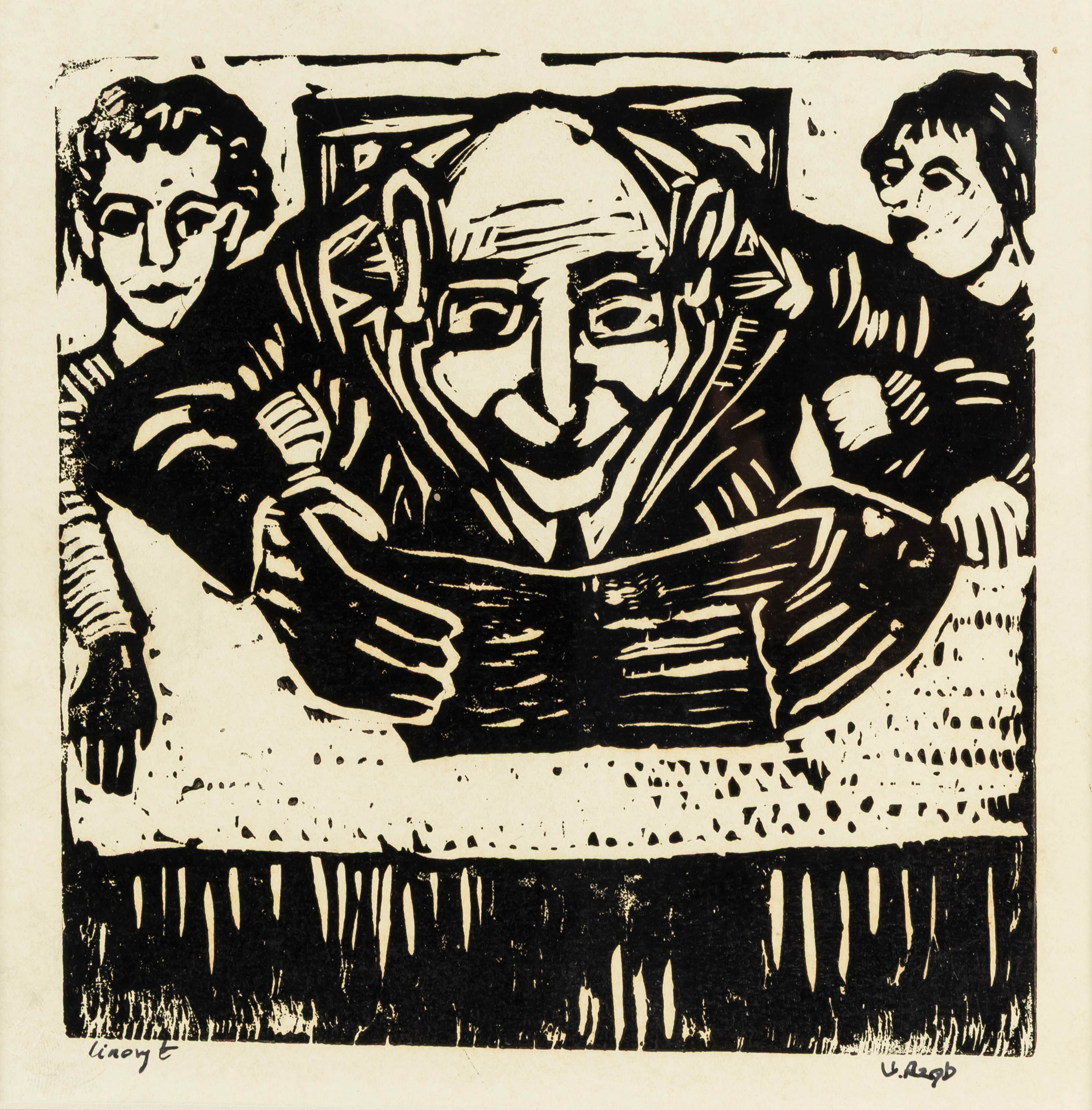 linoryt, papier, 17 x 17 cm,