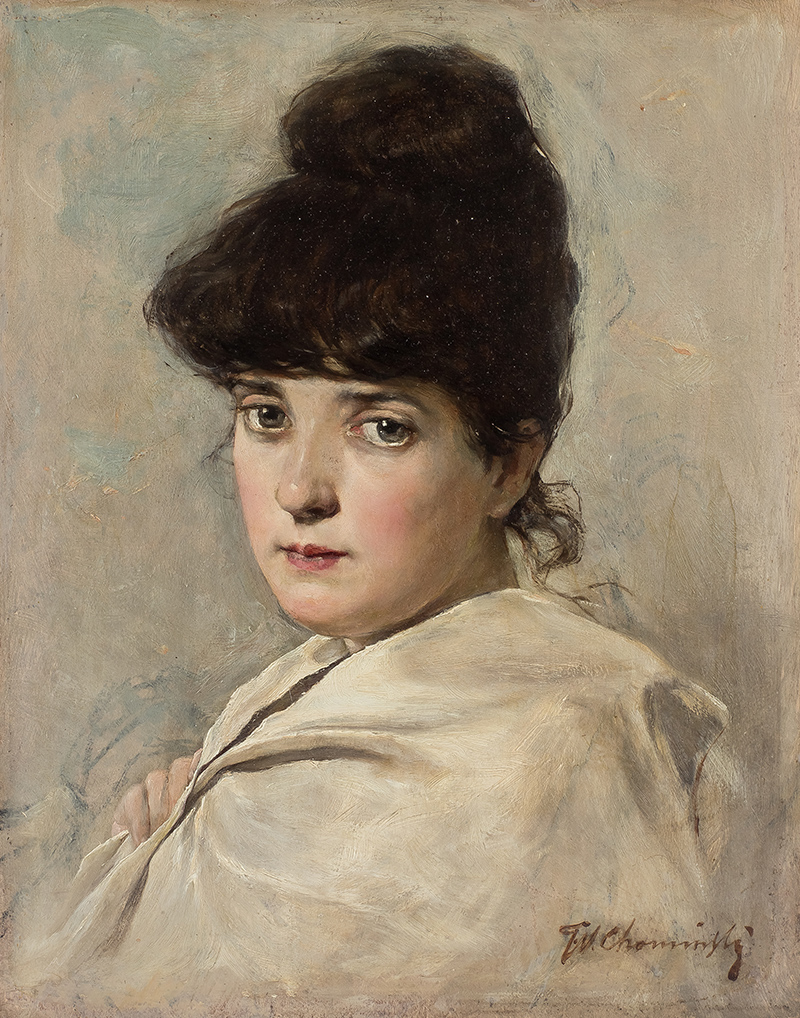 olej, deska mahoniowa, 25,4 x 20 cm,sygn. p.d.: Tv. Chominski, na odwrocie naklejka amerykańskiego sklepu ze sztuką: Walter Kimball & Co, 9 PARK STREET, BOSTON