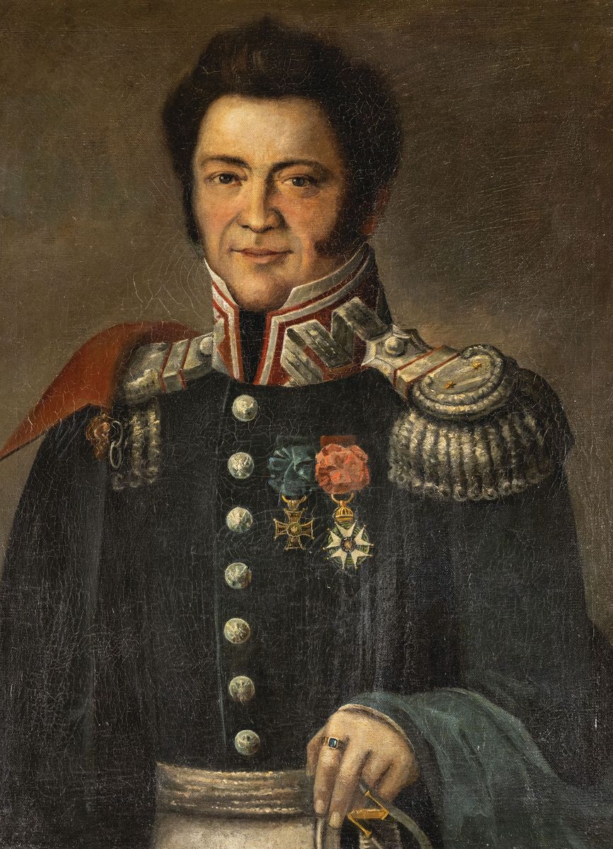 Sportretowany jest w mundurze generała brygady. Na piersi ma Krzyż Kawalerski Virtuti Militari i Legię Honorową.