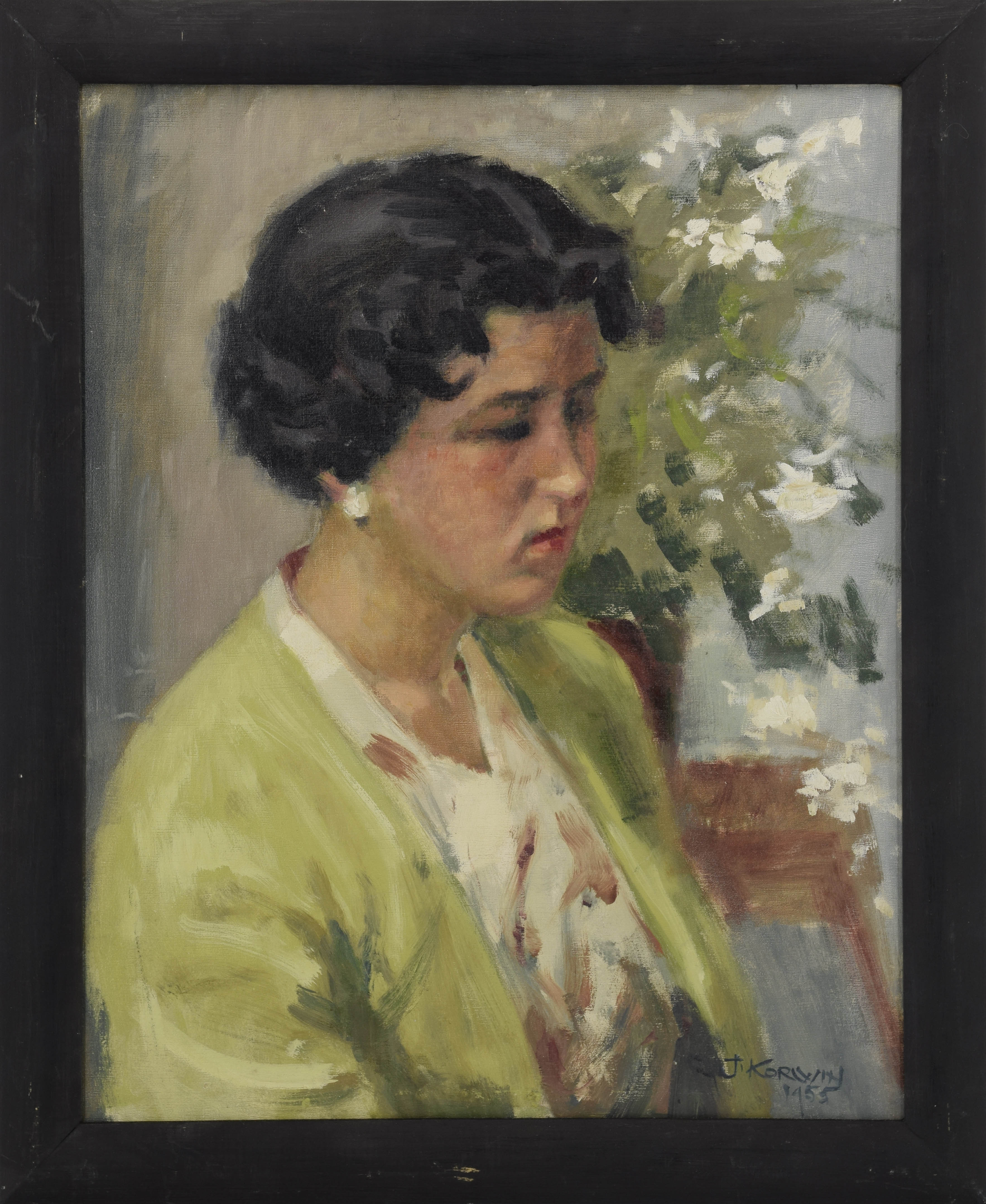 olej, płótno naklejone na tekturę; 50,5 x 40,5 cm;sygn. i dat.: J. KORWIN / 1955, na odwrocie nalepka z wystawy Sussex Brighton Art Gallery z 1956 roku.