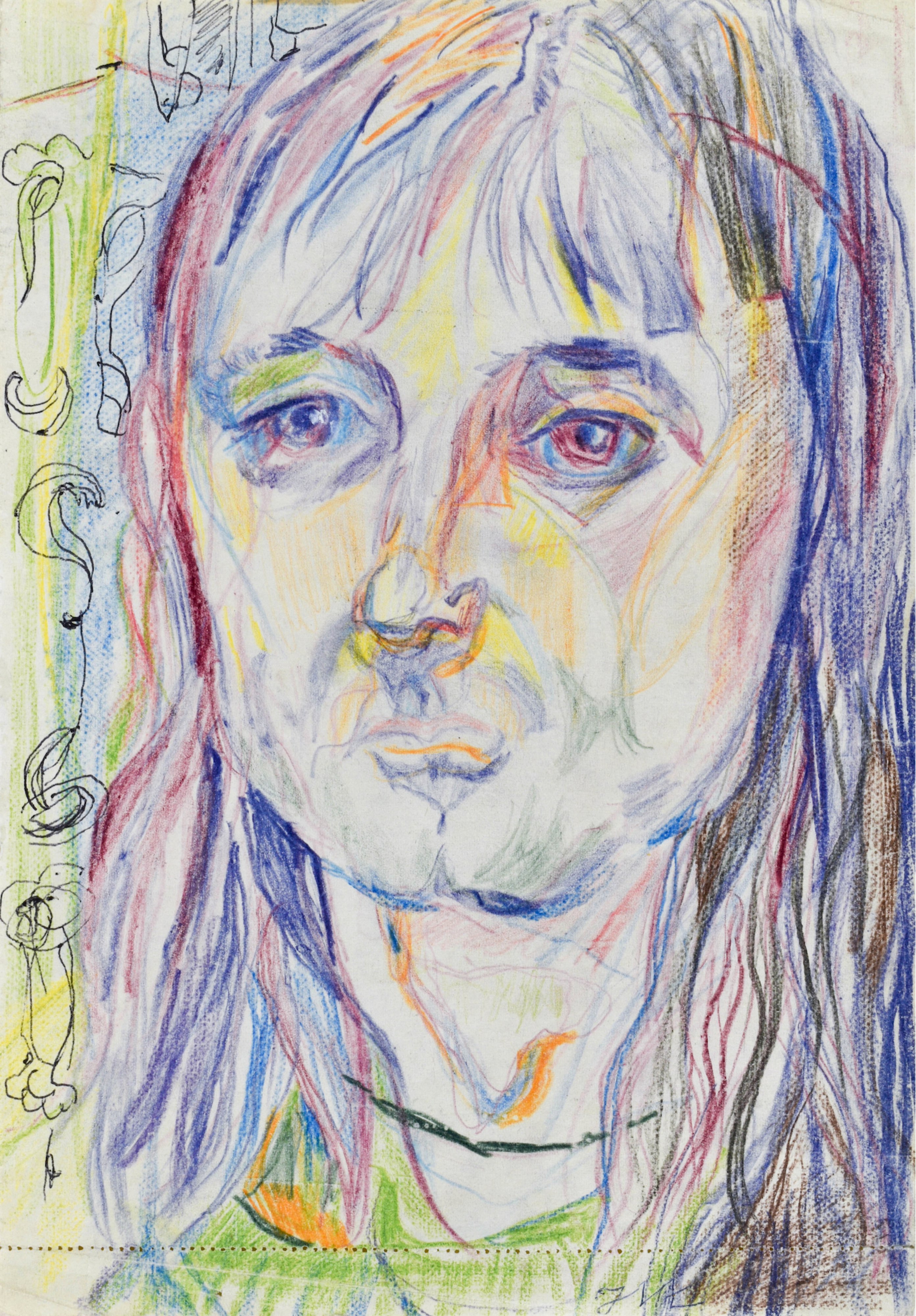 kredki, długopis czarny; papier - kartka ze skoroszytu (perforowany u dołu); 30 x 20,5 cm;